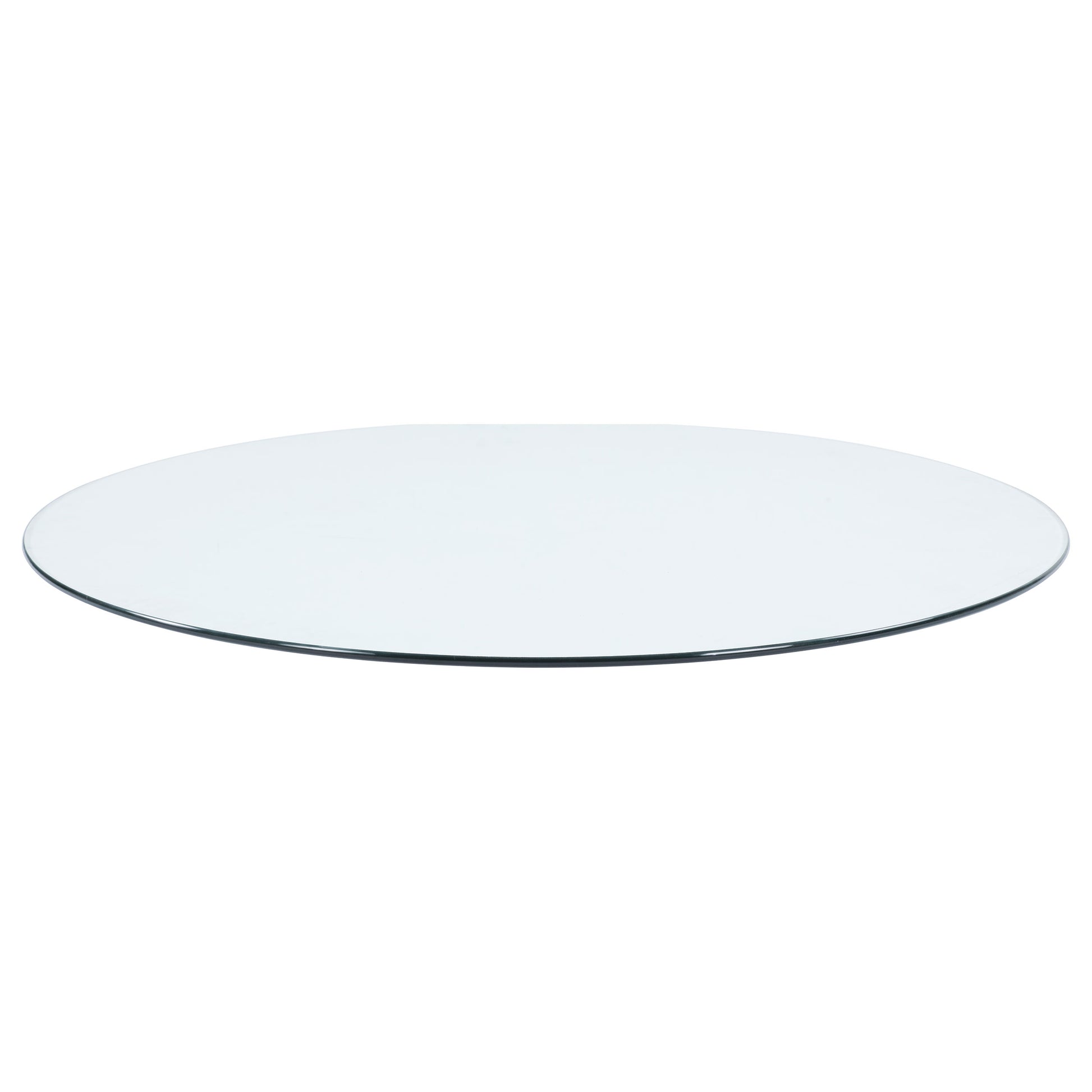 Create a new, stylish dining table or restore an older favorite. Make use of this sleek round glass tabletop. With 10mm of thickness, it serves everyday purposes. Clear tempered glass offers quality and security. A one-inch beveled edge creates a dimensional effect with a ton of sophistication.