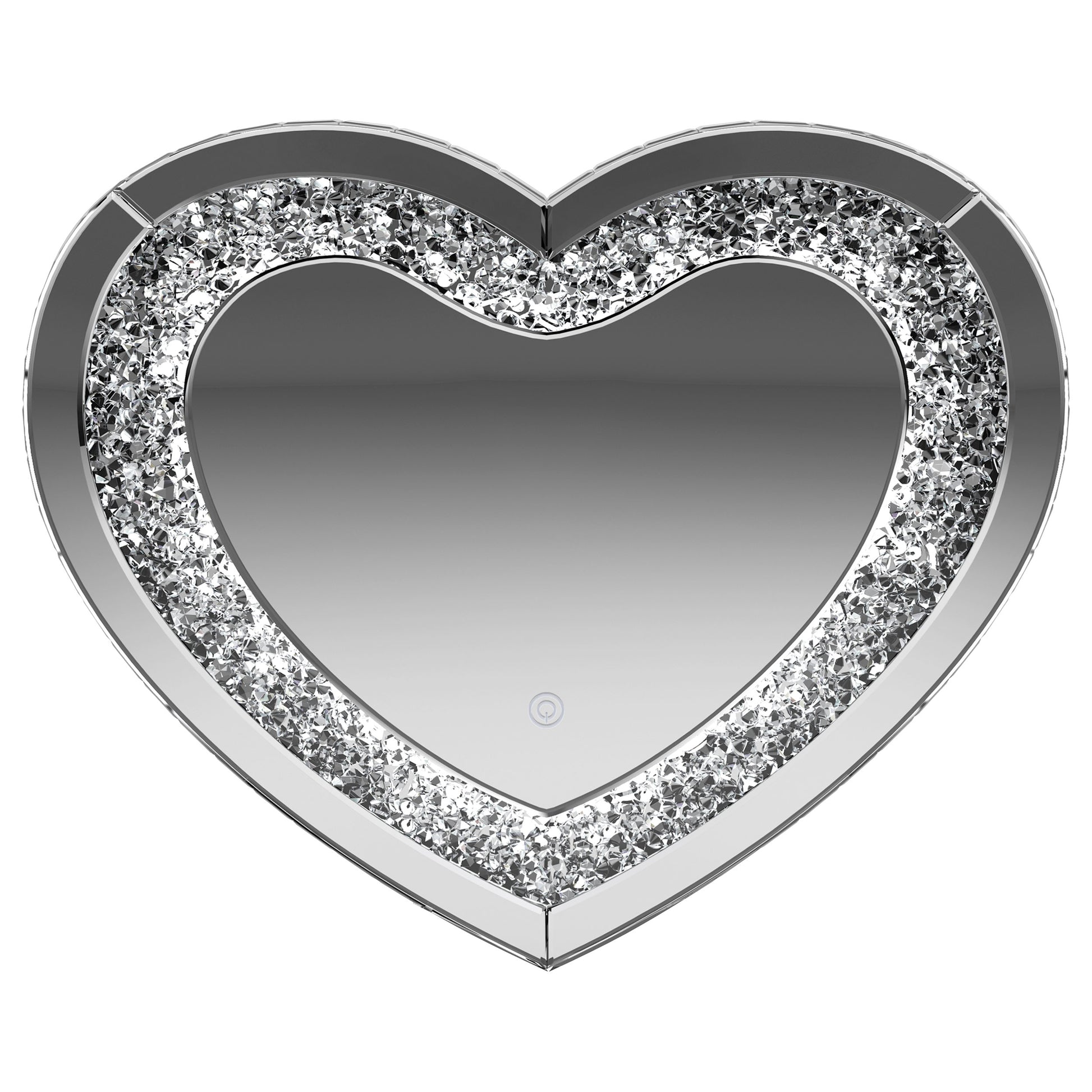 Aiko 36 x 30 Inch Heart Shaped LED Light Wall Mirror Silver