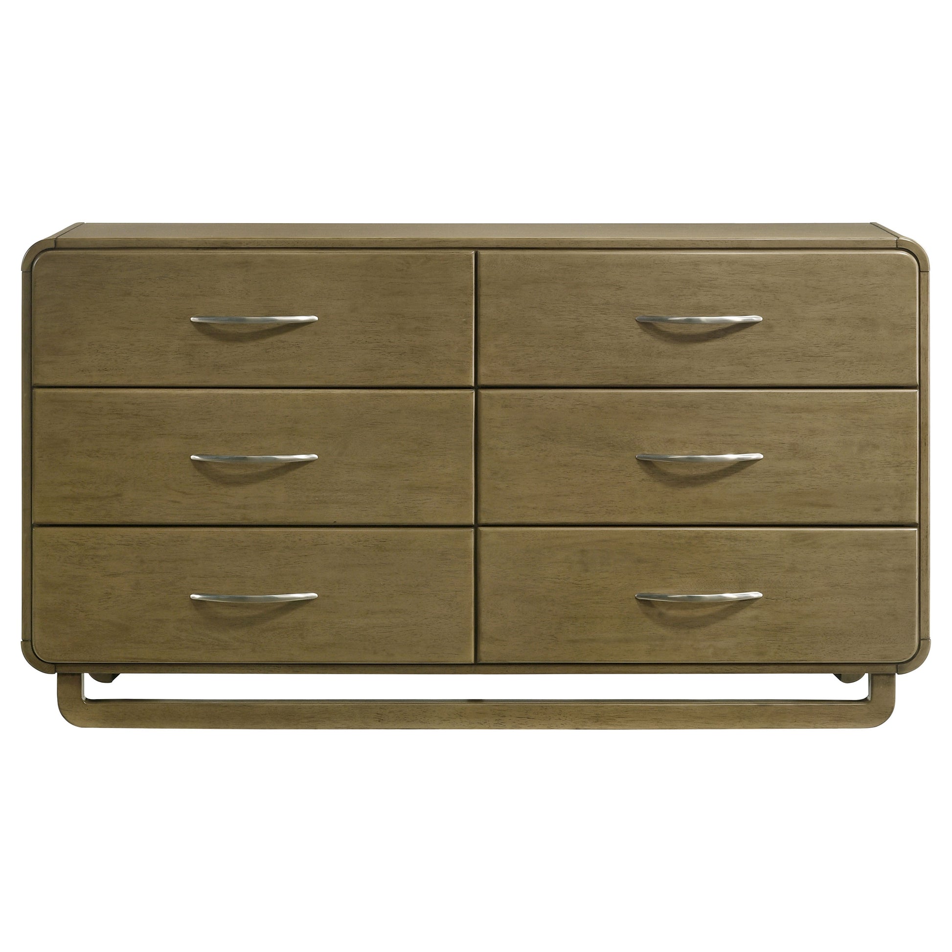 This six-drawer dresser offers a modern and sleek storage solution for your bedroom. The nutmeg wood finish exudes warmth while the rounded corners add a soft, contemporary touch to the design. Each drawer is equipped with metal extension glides, ensuring smooth and effortless operation. The dresser's minimalist design is enhanced by the matte nickel hardware, creating a stylish and practical piece. Crafted from solid rubberwood, this dresser is built to last while elevating your bedroom decor.