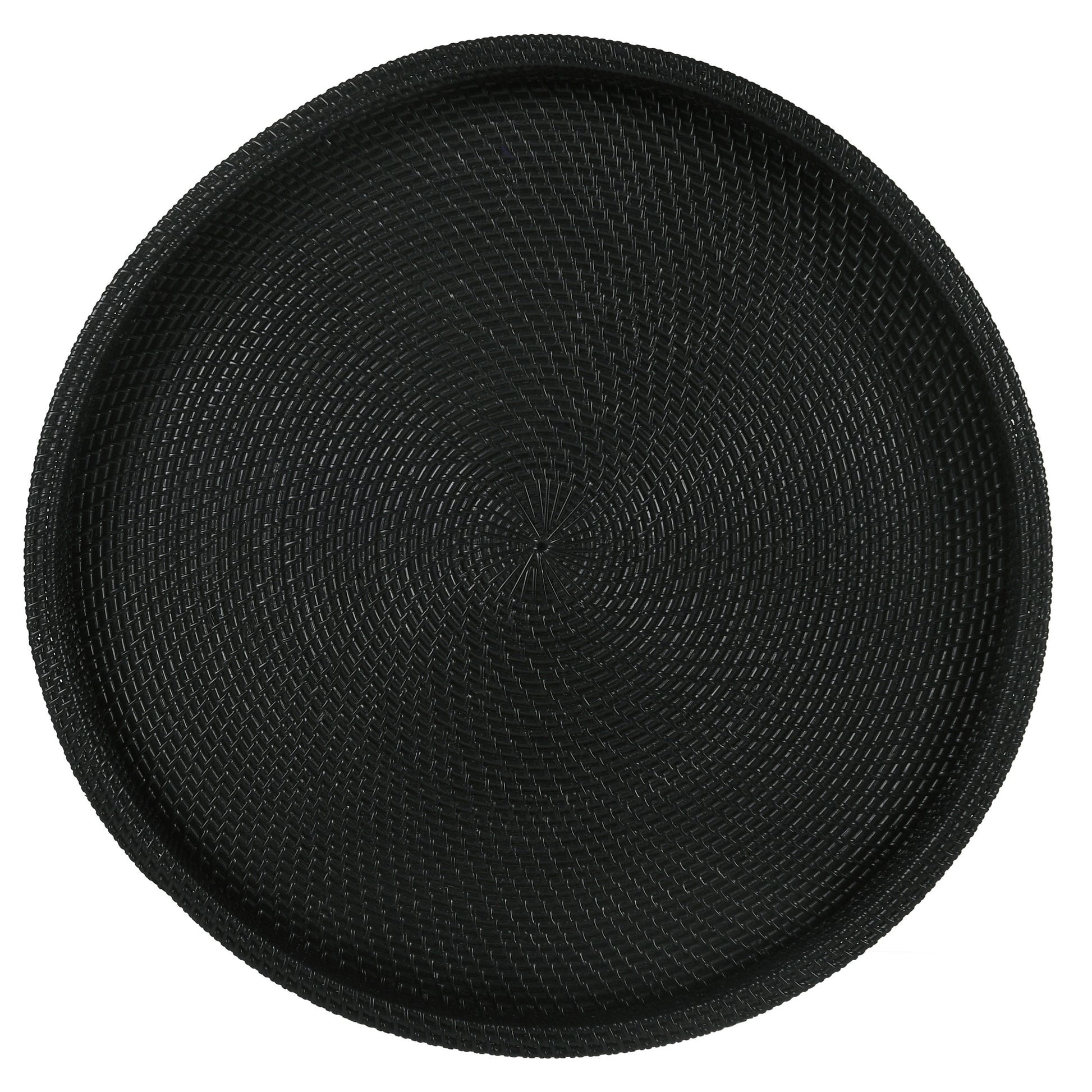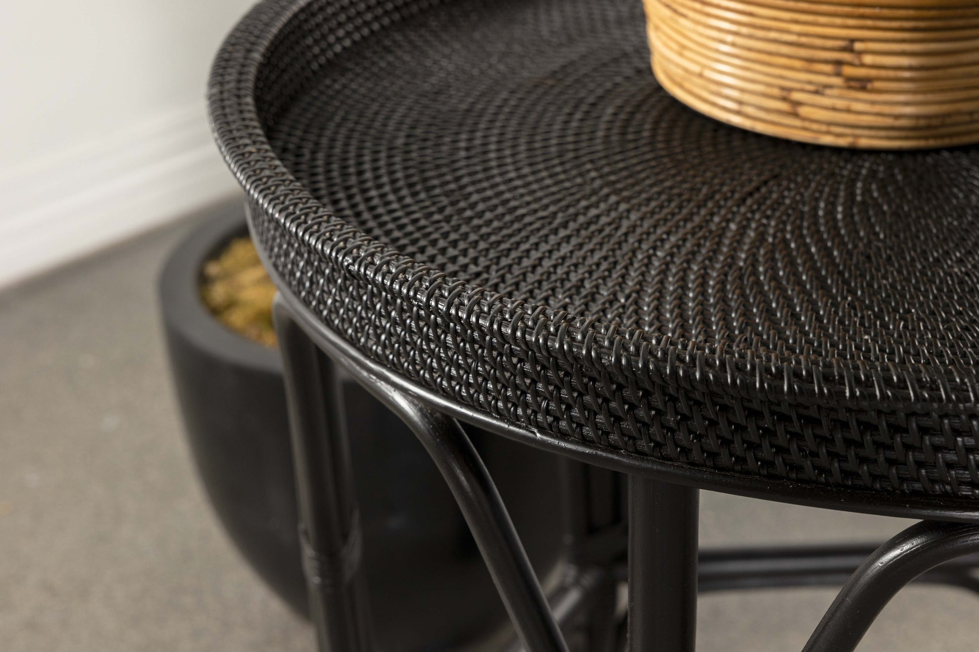 Antonio Round Rattan Tray Top Accent Side Table Black