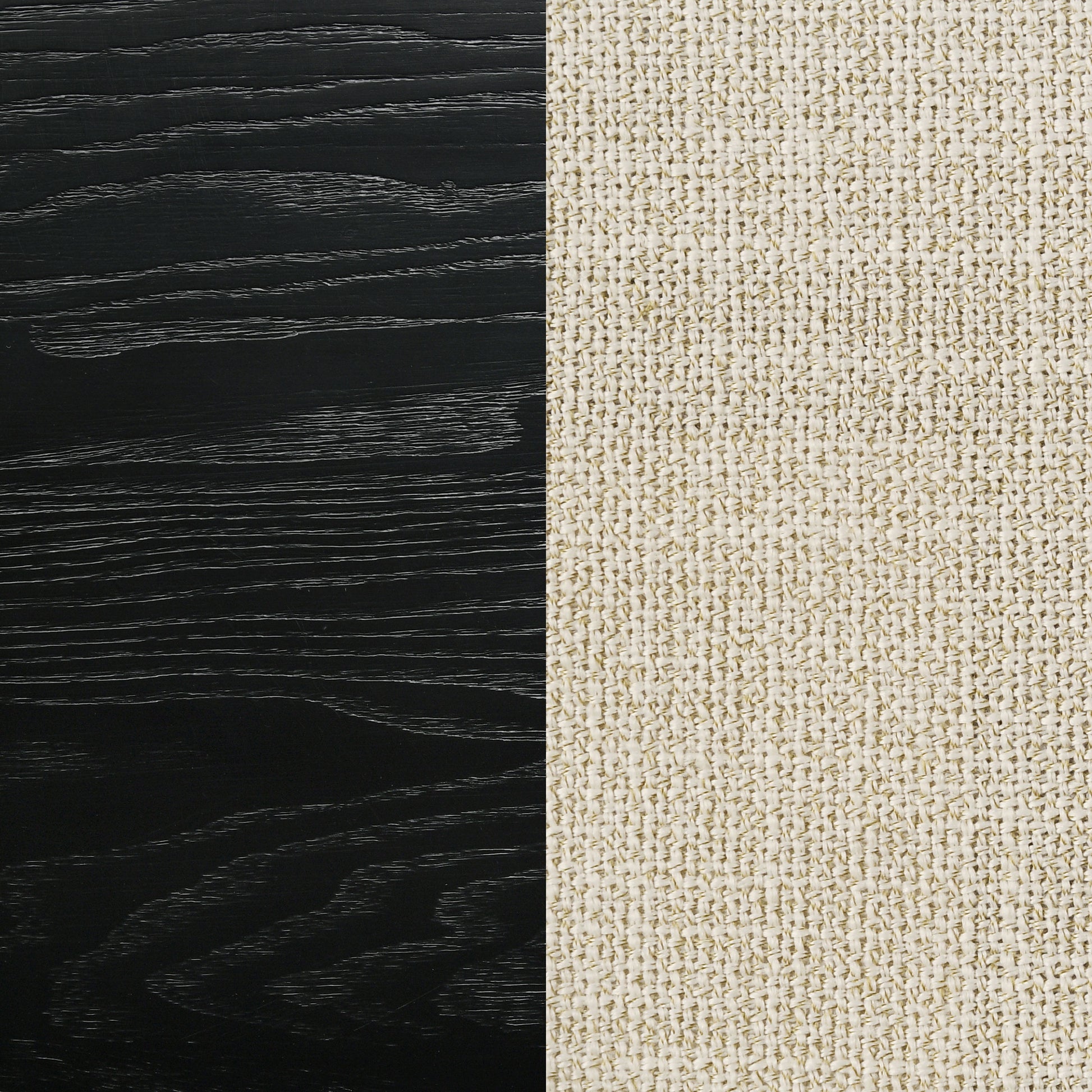 This coastal-inspired bedroom set blends mid-century modern influences with natural textures for a serene retreat. The bed features a cream fabric upholstered headboard and footboard, framed by a wire-brushed wood finish that enhances the beauty of rubberwood, engineered wood, and ash veneer. Aged brass knobs and slender metal legs provide a refined contrast. Designed for modern living, the nightstand includes a built-in dual USB charging port. With its organic textures and functional details, this set offers timeless style and everyday convenience.