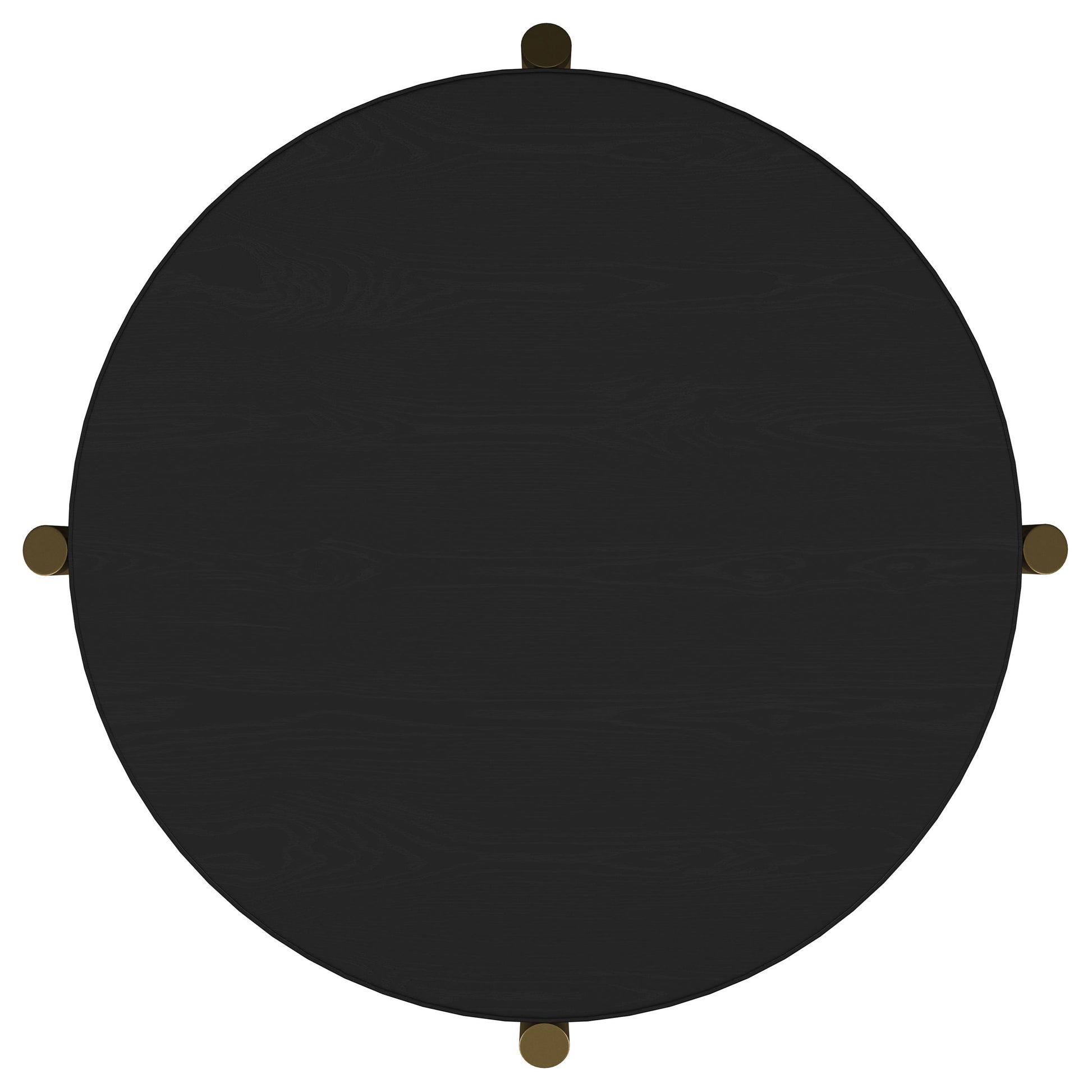 This round end table showcases a refined blend of natural and industrial elements, perfect for modern interiors. Crafted from rubberwood, engineered wood, and white ash veneer, its finish highlights the table's organic grain for a subtle, rustic appeal. The lower shelf features natural woven rattan, offering functional storage with a stylish touch. Sturdy aged brass-finished metal legs provide contrast and durability. Ideal as a side table or accent piece, it combines elegance and utility effortlessly.
