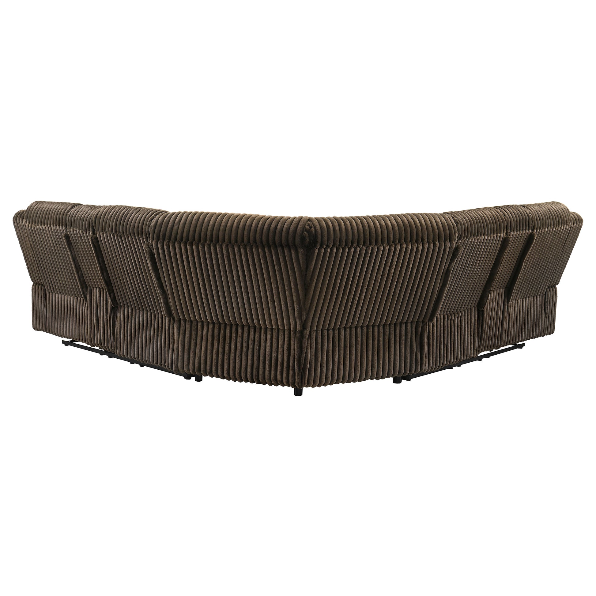 Unwind in sculpted comfort with this reclining sectional sofa, where bold texture meets irresistible softness. Wrapped in wide-wale corduroy upholstery, its velvety ribbed finish creates visual depth and an inviting touch. Deep channel tufting enhances the plush profile, while dual consoles offer lift-top storage and stainless steel cup holders. With pocket coil seating beneath every cushion, this sectional is a luxurious retreat for everyday lounging and connection.
