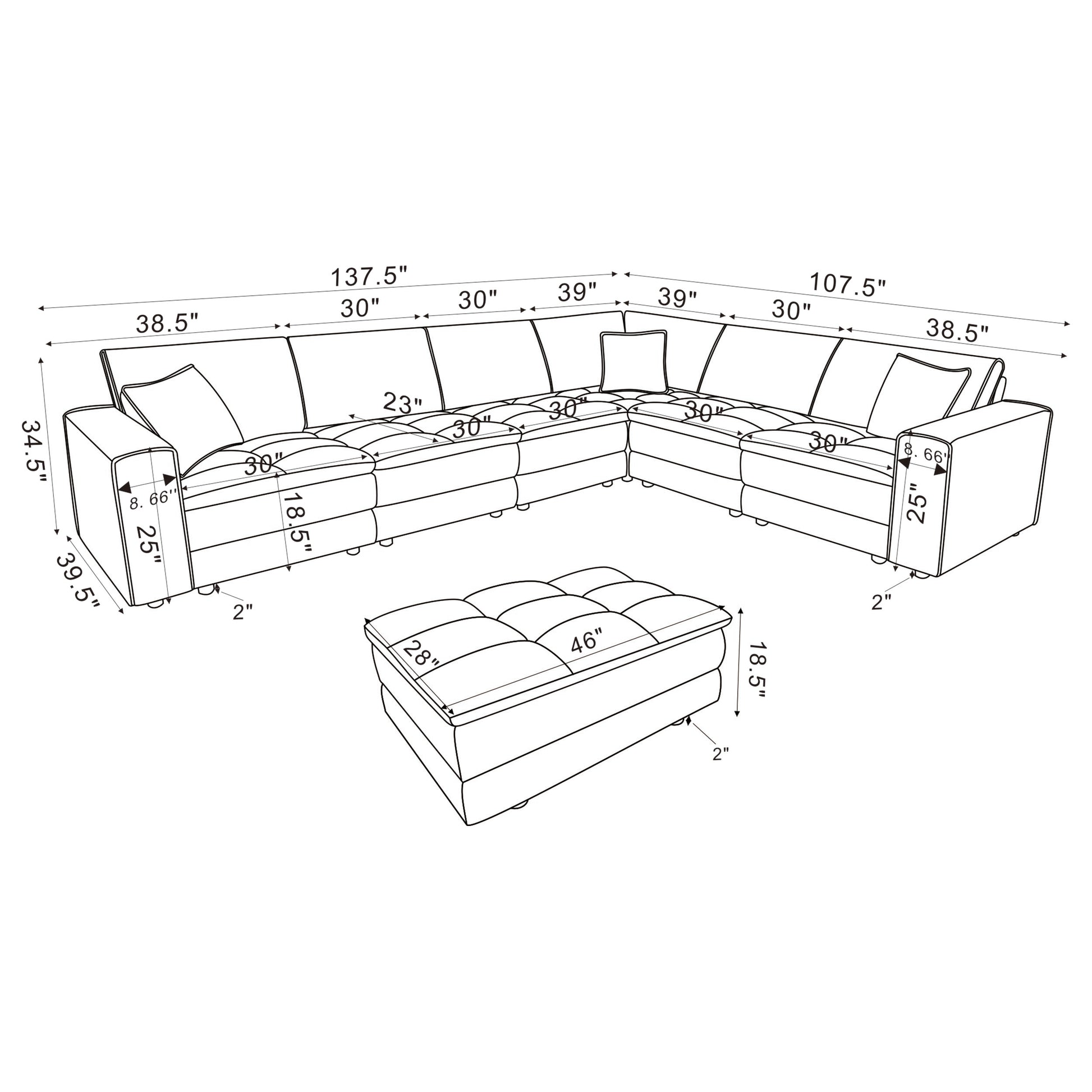 | Modular Sectional | 137.5 | 107.5 | 34.5 | 326.27 | |