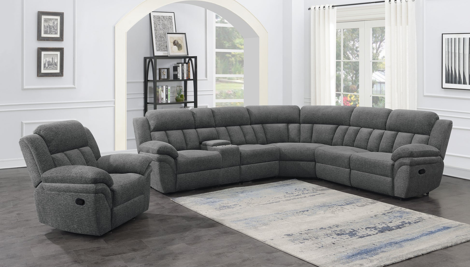 Sink into the cozy comfort of this manual glider recliner, upholstered in soft charcoal fabric. Designed with wide pillow arms and a plush backrest, this recliner features supportive pocket coil seating and a cool gel memory foam layer to enhance breathability and long-lasting relaxation. Its smooth gliding motion and inviting profile make it the perfect addition to any casual living space or entertainment room.