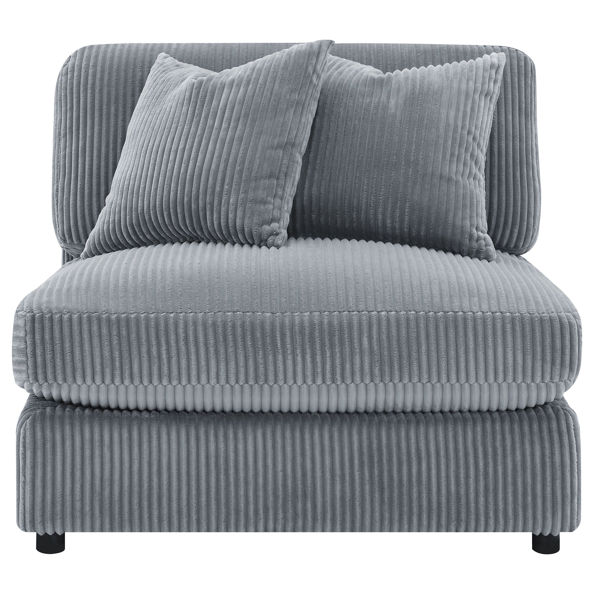 Wrap yourself in the inviting allure of this three-piece sectional, where timeless design meets modern versatility. The additional armless chair in the center expands your lounge space, creating a sanctuary of comfort and style. Draped in luxurious, wide corduroy fabric, this sectional whispers sophistication in either fog or sand hues. Its reversible chaise can adapt to any space, ensuring a perfect fit for your home's layout. Let this sofa be the canvas for your relaxation, crafted for those who appreciate both form and function.