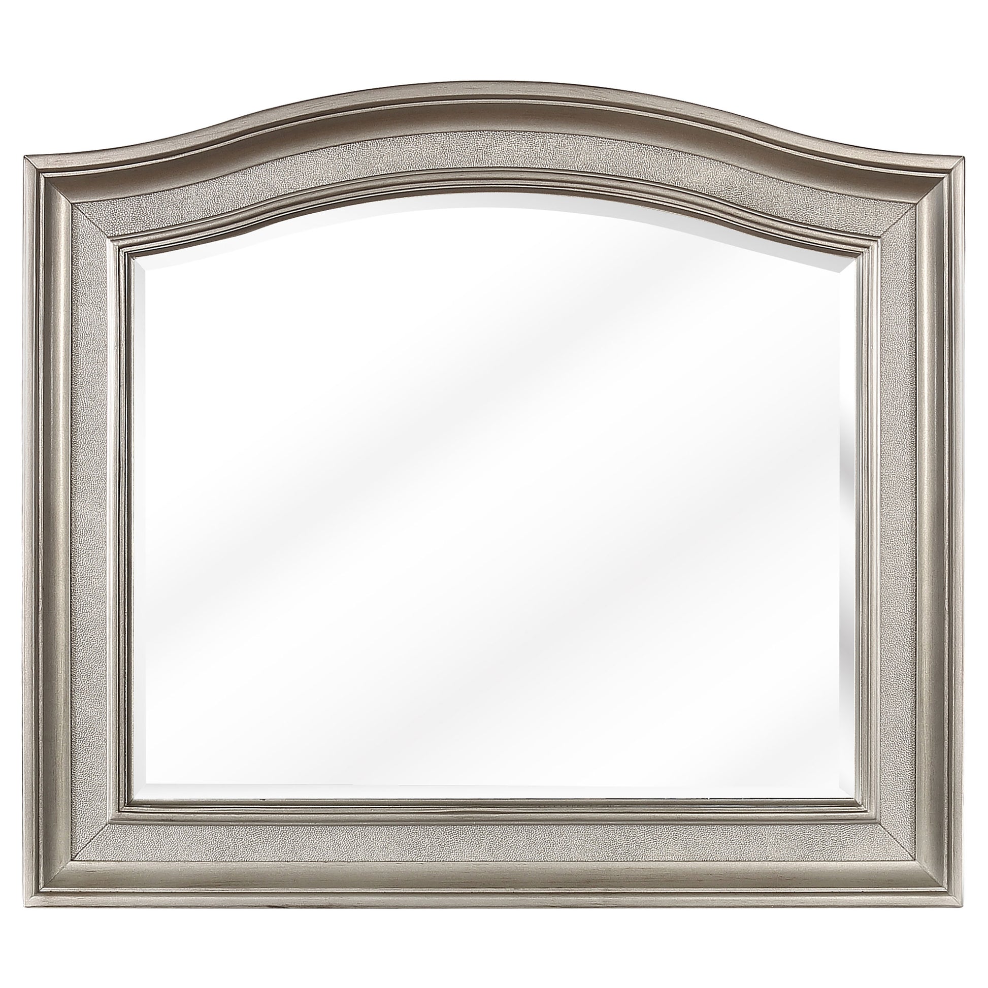 Top off a glamorous dresser with this bright, metallic mirror featuring a highlight glaze. In a reflective platinum finish, beveled lines are enhanced to add extra depth. Traditional curves adorn the top of the mirror and add a delicate element to the otherwise sleek frame. Vintage-inspired, the silhouette looks great when paired with a chic decor scheme. Get dressed or brush your hair in the crisp reflection from this stylish frame.