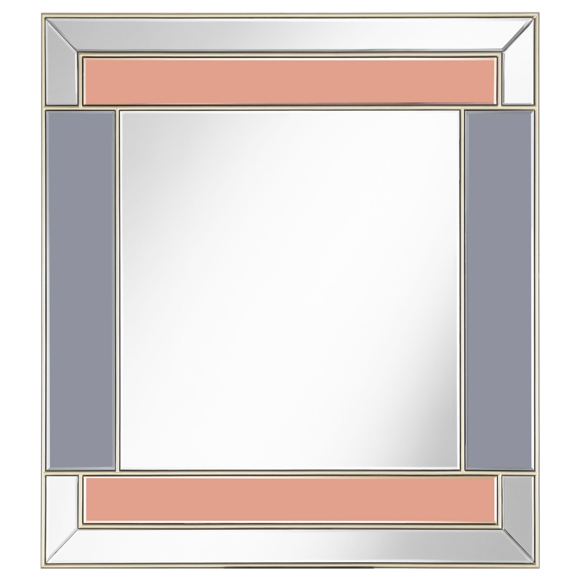 With a two-tone design, this rectangular wall mirror is sure to be noticed. Lending an Art Deco flair exhibited in staggered lines and vintage-inspired warm accents, this glamorous yet contemporary wall mirror offers a dramatic touch. Stainless steel trim outlines the silhouette of the mirror along with the edges of each mirror tile. With champagne mirror tile accents flanking the edges and a beveled outer frame, this mirror rests boldly inside a foyer or above a fireplace mantel. With classic elements and subtle retro vibes, this accent piece will leave an impression.