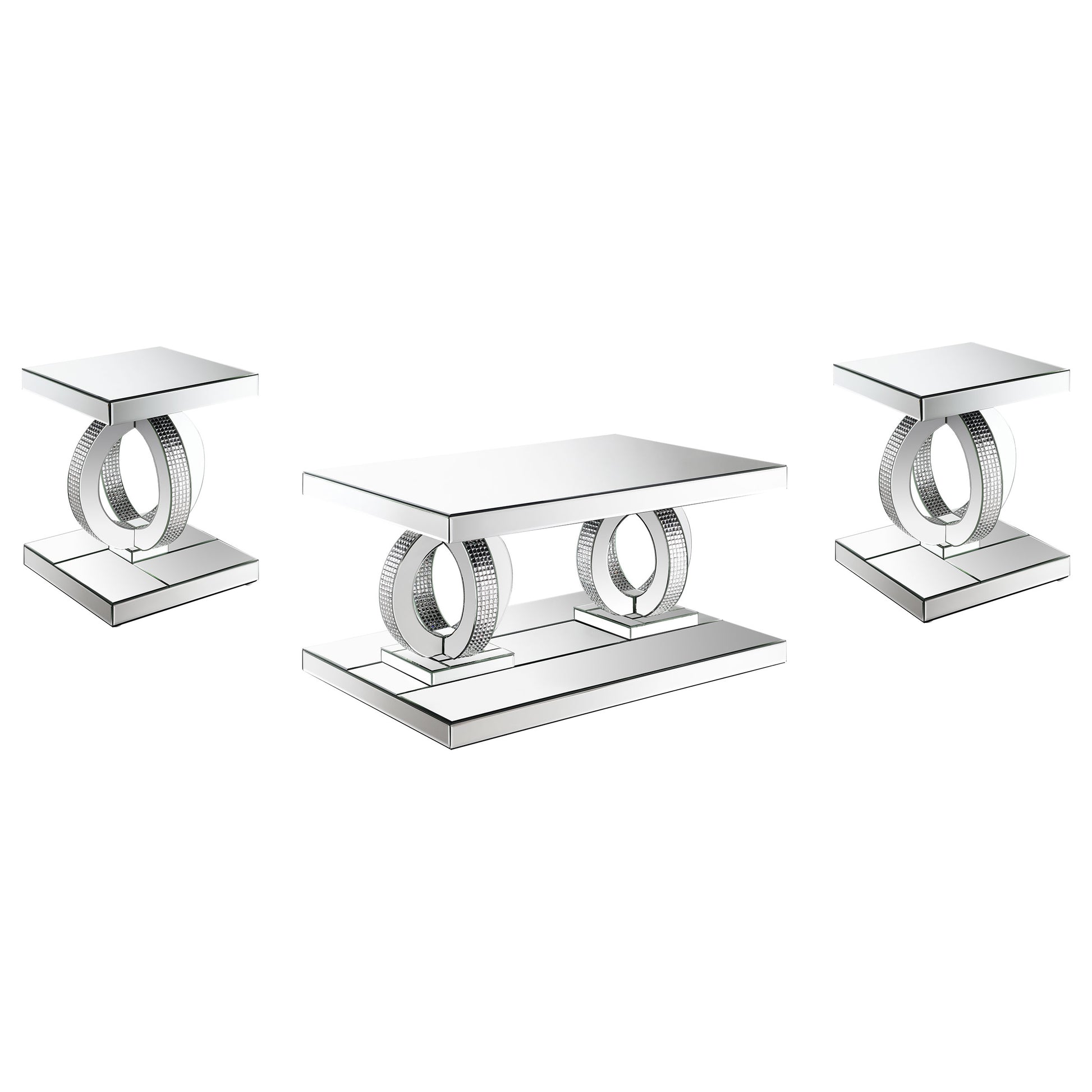 Breena 3-piece Mirrored Coffee and End Table Set Silver