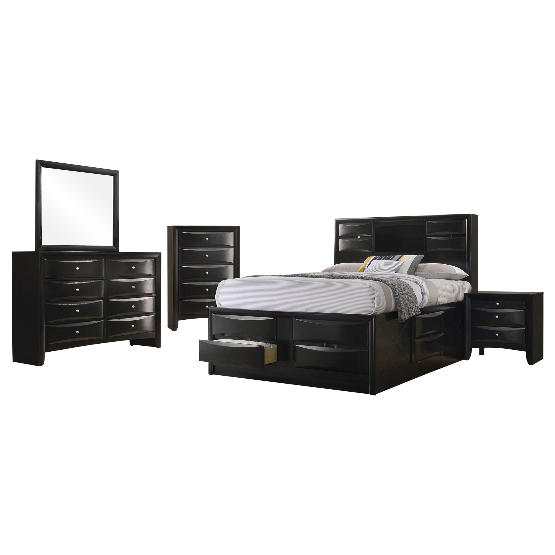 From the Briana collection comes this smooth, transitional style 5-piece bedroom set for a primary suite. The handsome storage bed offers function and fashion with drawers in the footboard as well as storage compartments behind drop down doors in the headboard and right side. The chest, nightstand, and dresser are constructed with plenty of drawers with chambered edge fronts and brushed chrome knobs, affording ample storage space with added stylishness. The straight, clean rectangular mirror easily fits upon the stately dresser finish out the set. The entire set is finished in timeless black that's sure to match any home decor.
