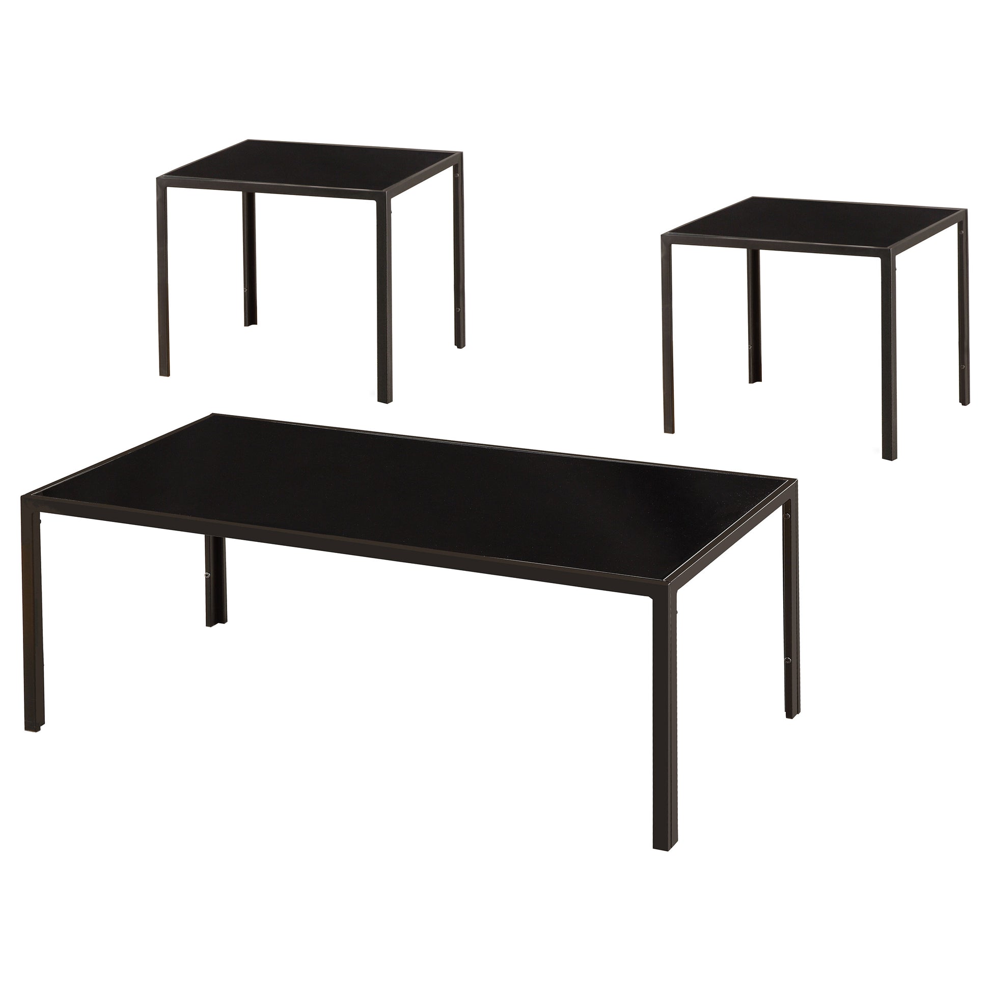 This sleek 3-piece coffee table set features clean lines and modern styling, perfect for any living room. The tempered black glass tabletops add a sophisticated touch, while ensuring durability and resistance to scratches. Supported by a sturdy metal frame with a black powder-coated finish, these tables provide long-lasting strength and stability. Ideal for entertaining or daily use, this occasional table set brings contemporary elegance to your space.