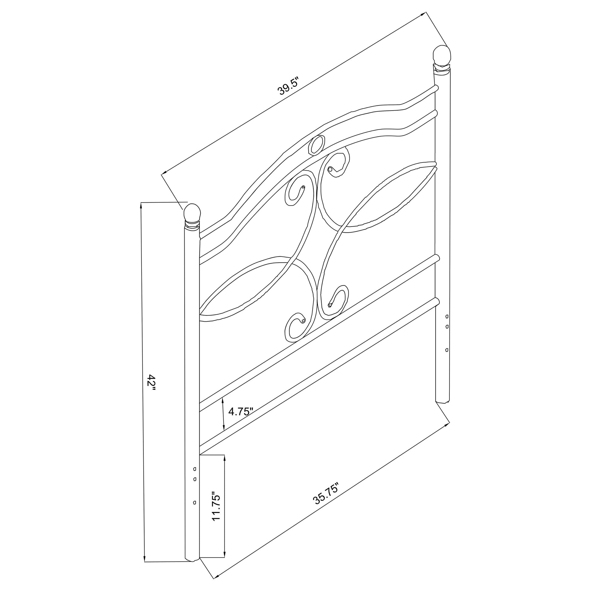 This metal twin headboard adds a sleek, unique panache to a simple metal bed frame. It features two gently arched curves at the top with metal rods underneath fashioned in ornate curves and swirls for a stylishly elaborate appearance. Both posts are topped by round knobs that are simple yet appealing. Finished in understated matte black that suits any modern decor. Also comes in full and queen sizes.