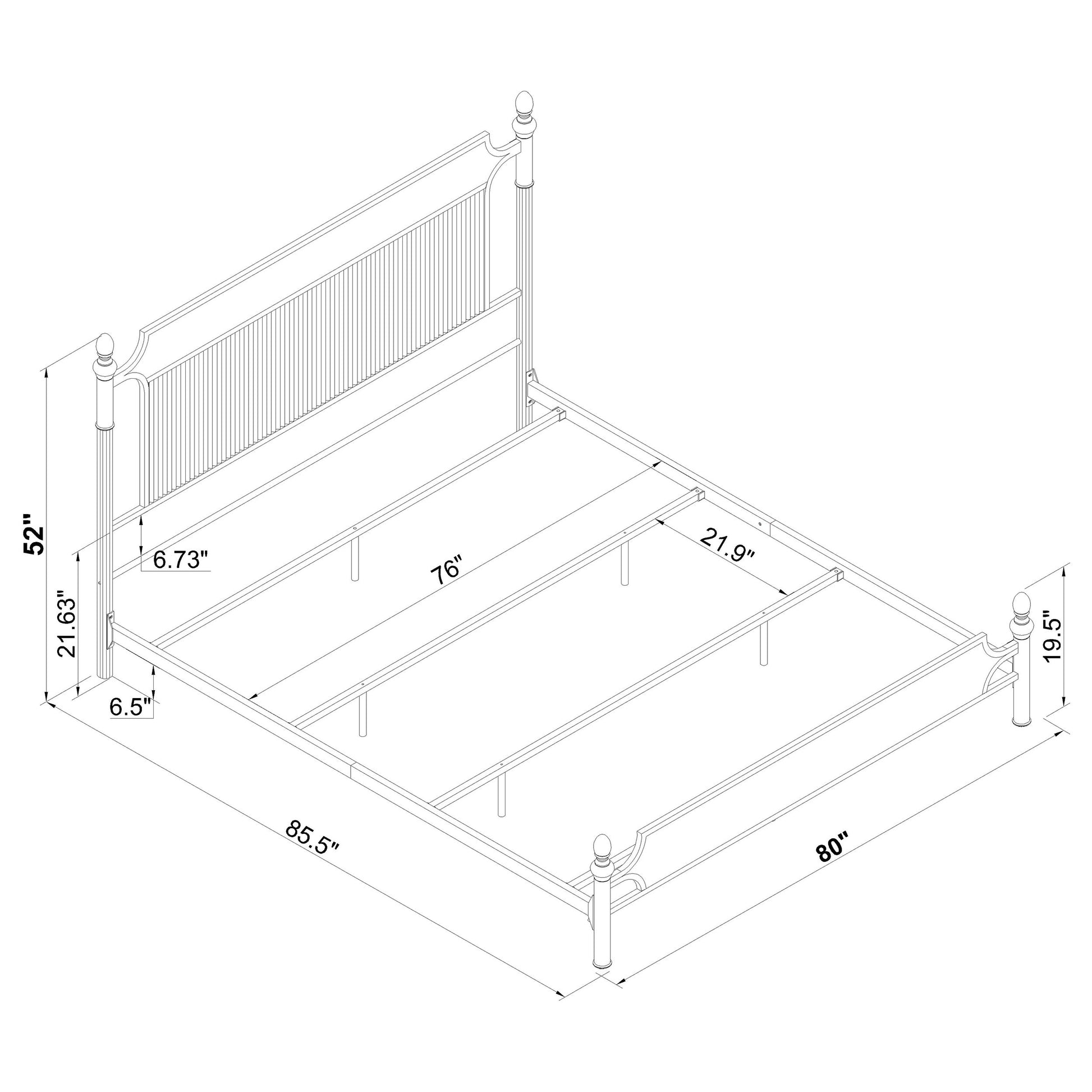 | Eastern King Bed | 80 | 85.5 | 52 | 71.06 |
