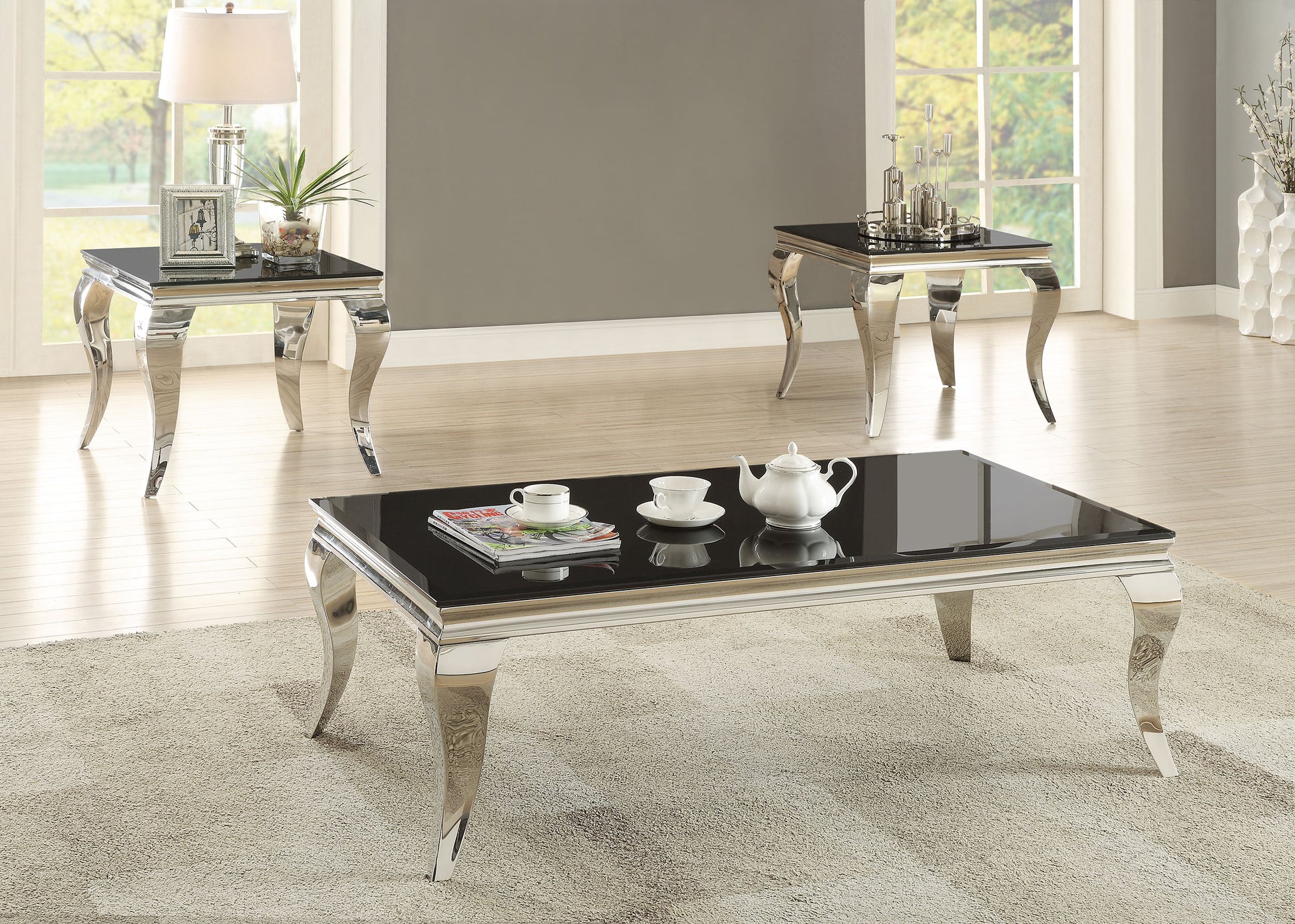 This end table exudes modern glam with a tempered beveled glass top and polished stainless steel cabriole legs. The reflective finish and gracefully curved Queen Anne style legs deliver timeless elegance and a majestic ambiance, perfect for elevating refined interiors. Its ultra-modern aesthetic combines style and practicality, making it an ideal choice for contemporary spaces. Smooth, easy-to-clean surfaces ensure effortless maintenance while preserving its sophisticated appeal.