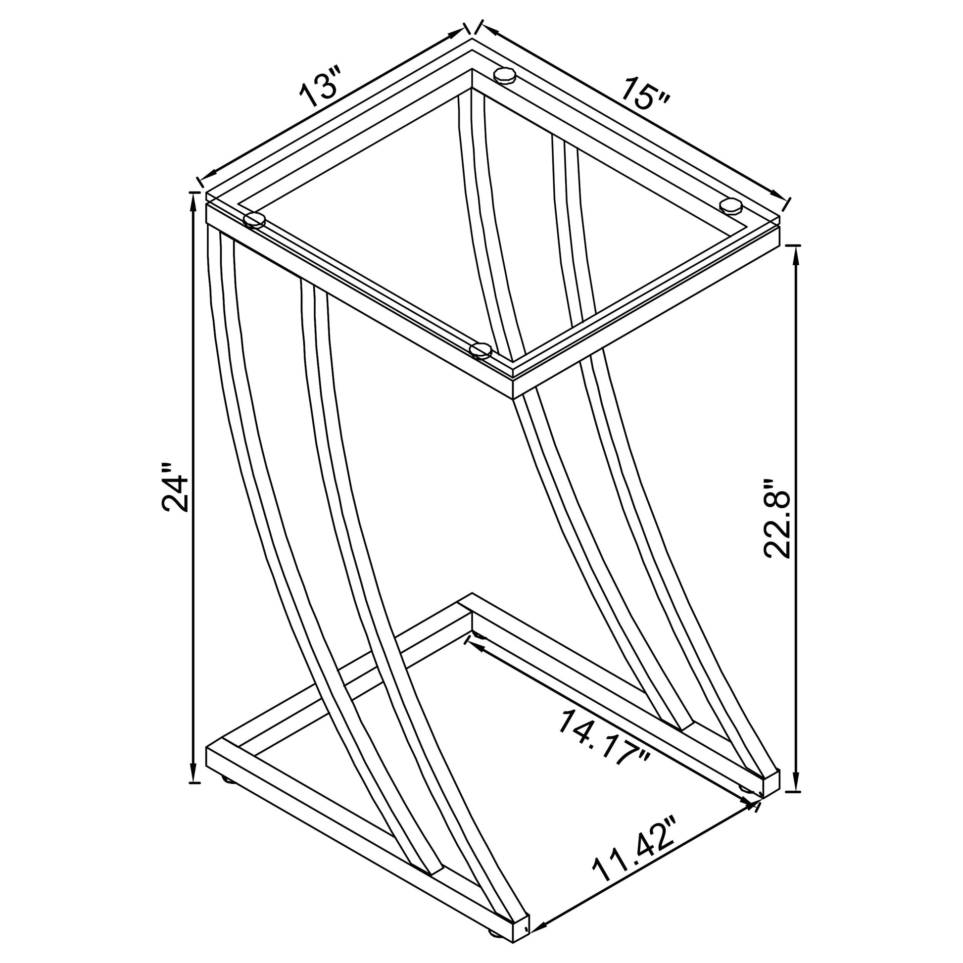 Elevate your space with this stylish side table, featuring a clear tempered glass top that blends sleek modernity with durability. The gracefully curved metal frame in an electroplated chrome finish adds sophistication and strength, making it a standout addition to any room. With its open and airy design, this versatile end table fits seamlessly next to sofas or chairs, offering both functionality and a refined contemporary aesthetic.
