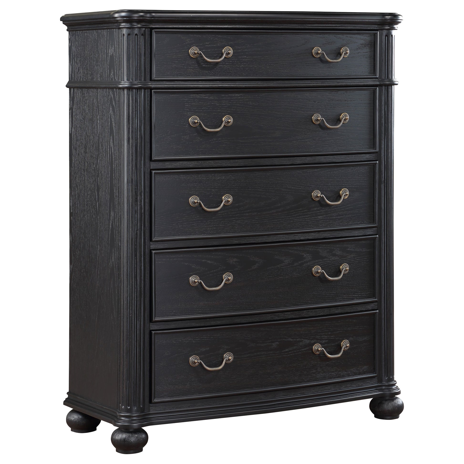 Discover the epitome of elegance with this five-piece bedroom set, anchored by a queen bed with a stunning tufted headboard. The bed's luxurious design sets a tone of sophistication, echoed by the accompanying nightstand and dresser. The dresser's nine drawers and the nightstand's functional design ensure your essentials are neatly organized. The set is completed by a graceful dresser mirror and a five-drawer chest, both echoing the set's dark, rich finish and classic style. This collection is more than furniture; it's a testament to refined living and timeless beauty.