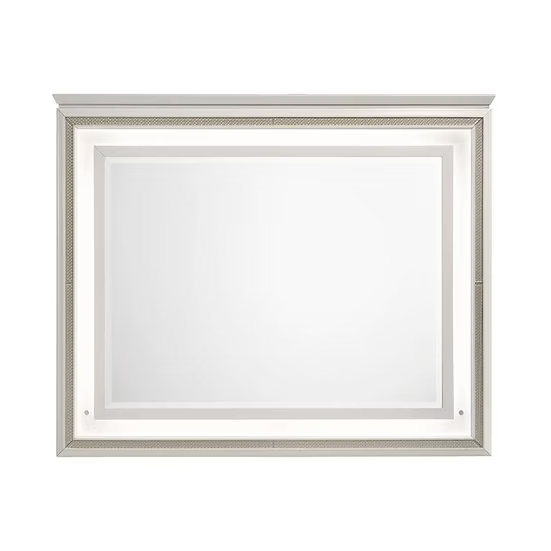 Features: Padded LED Headboard, LED Mirror, Acrylic Legs, Gold Accent Decor, Pattern Panels, & Accent Handles