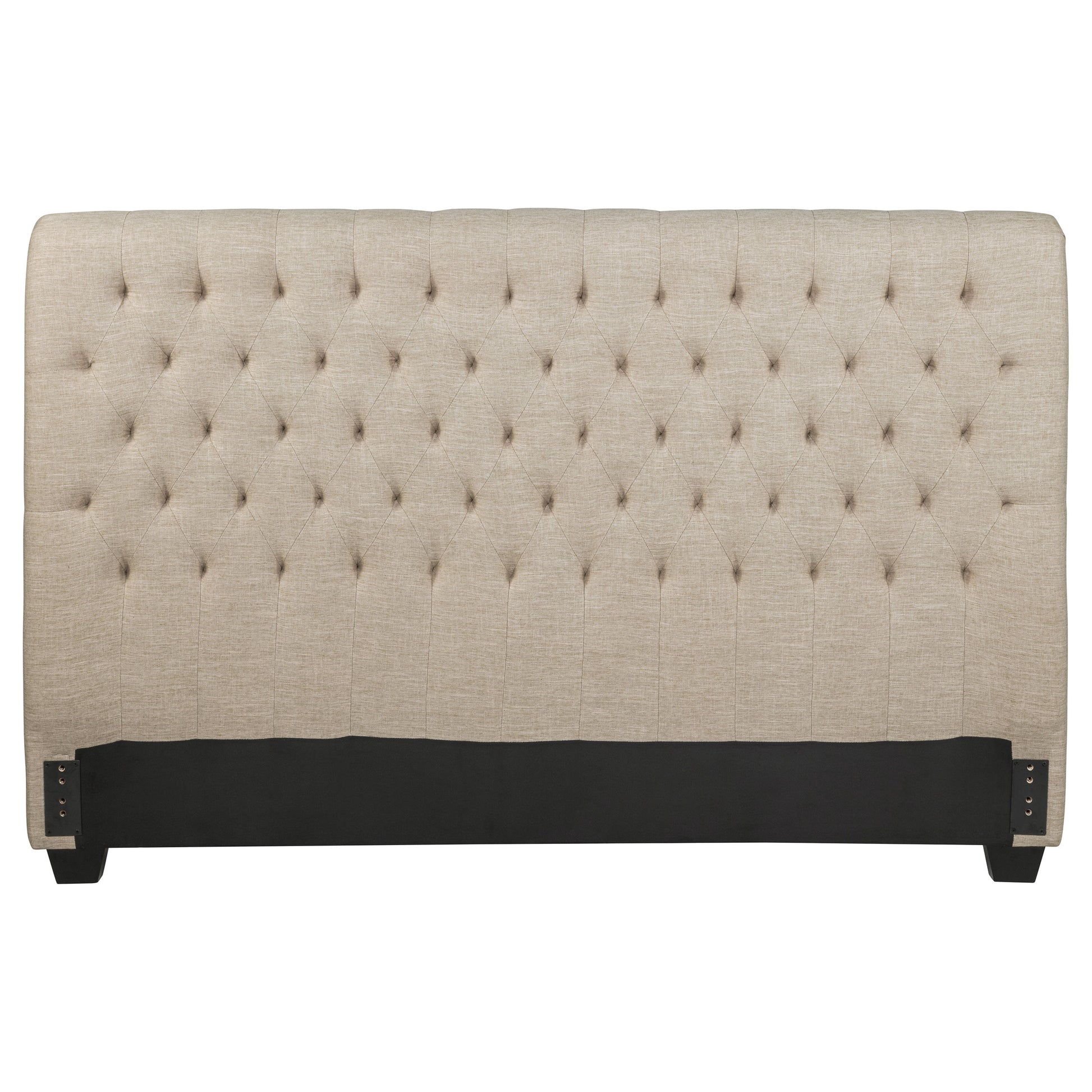 Set the tone in your bedroom with a stylish, modern headboard. This upholstered design requires a bed frame (not included) and creates a fresh, refined look without taking up too much space, leaving your bedroom open and airy. Its neutral upholstery sets the tone in your bedroom decor, while plush padding creates an inviting, cozy impression. Button tufting creates a diamond pattern, delivering the perfect blend of classic and contemporary design themes. Complete with espresso finish block feel that bring stylish appeal.