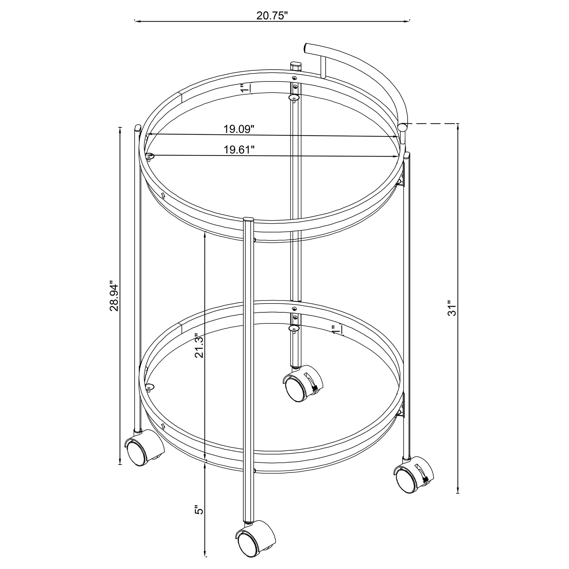 Chrissy Round Glass Shelf Metal Bar Cart Chrome