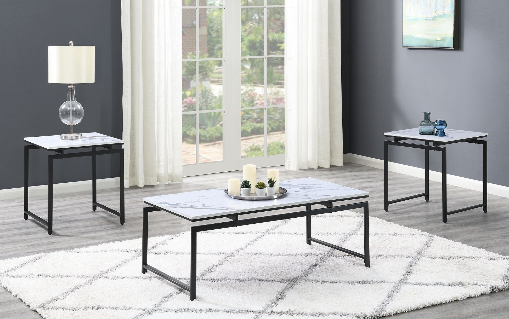 Clark 3-piece Faux Marble Top Coffee Table Set White