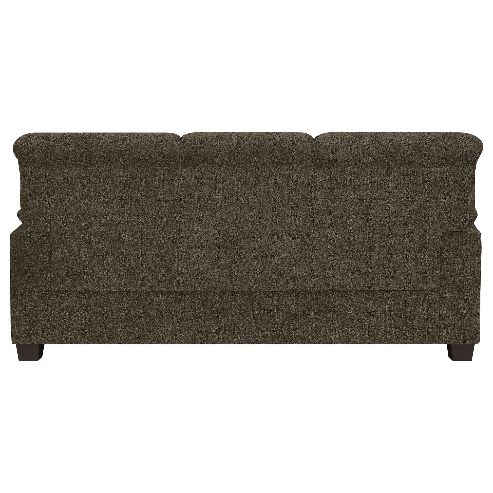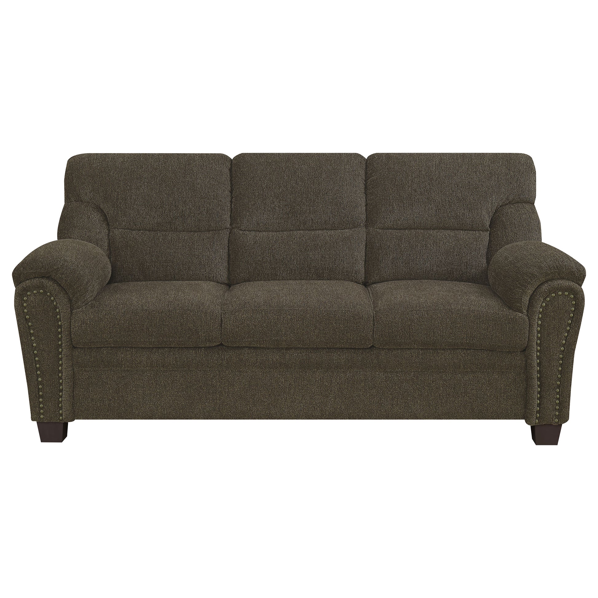 Add an aesthetic of cool, classic glamour to your living room. This sofa boasts a transitional design that looks lovely in any space. Its silhouette is sleek and simple with gracefully curved arms. Its beautiful upholstery is brought to life by elegant nailhead trim. Its seating is pleasingly soft and plush, rounding out its casual design with a high level of comfort.