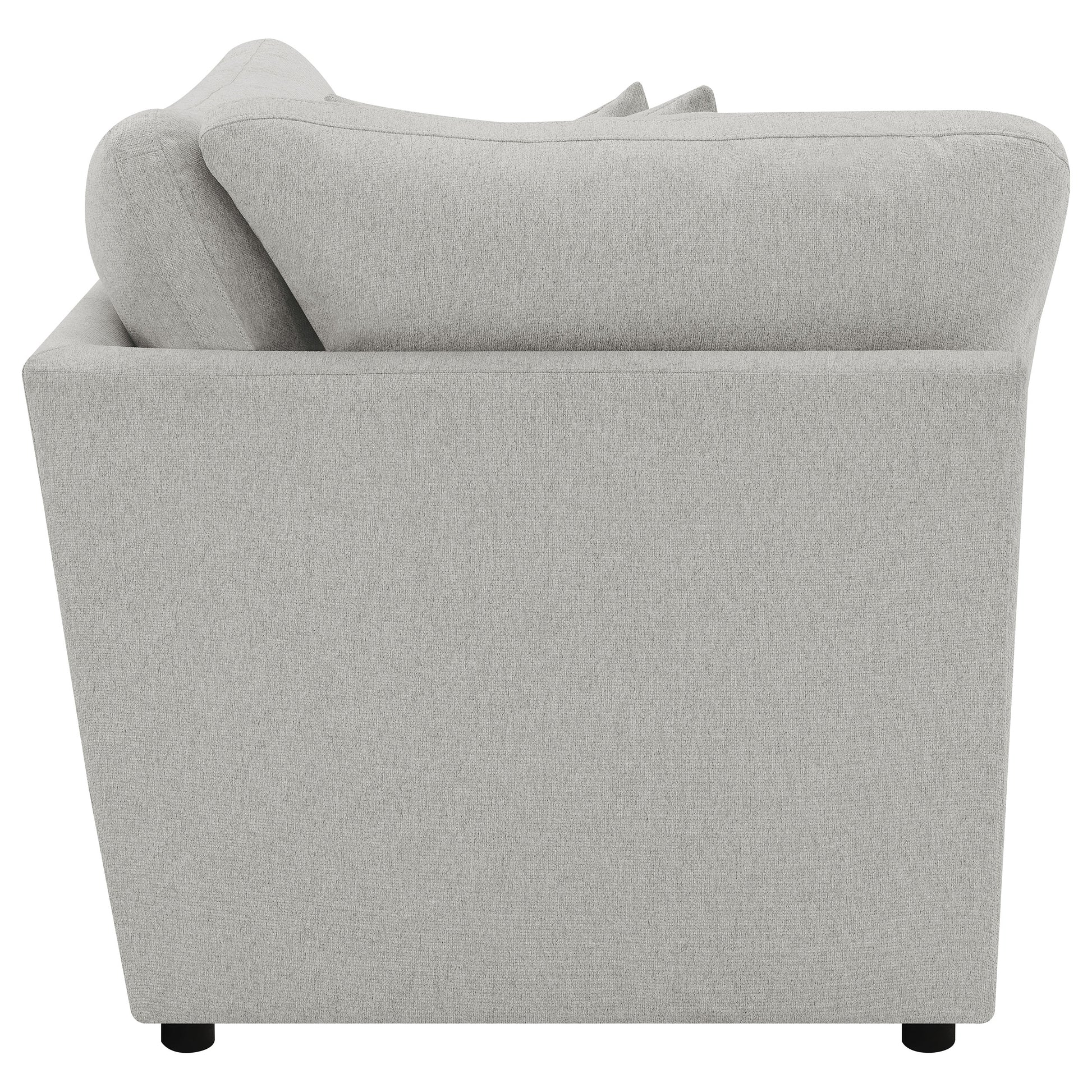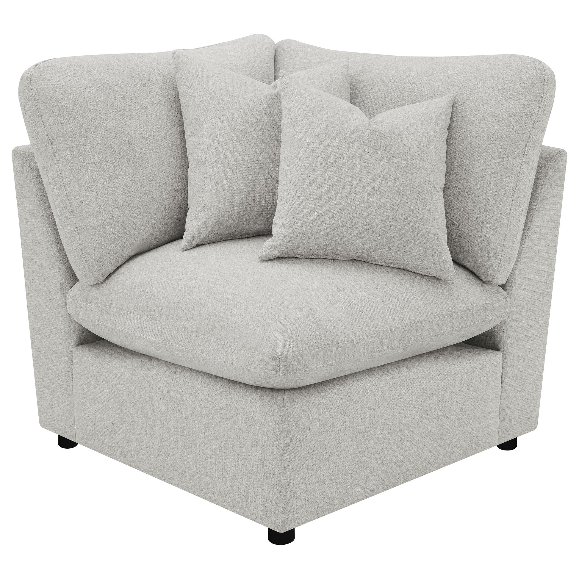 Convert your modular sofa into a sectional with the corner chair, designed to fit perfectly in any corner. This chair includes two plush pillows and features premium down-like filled cushions for a luxurious seating experience. The sleek, modern design enhances any decor, making it a perfect addition to your living space.