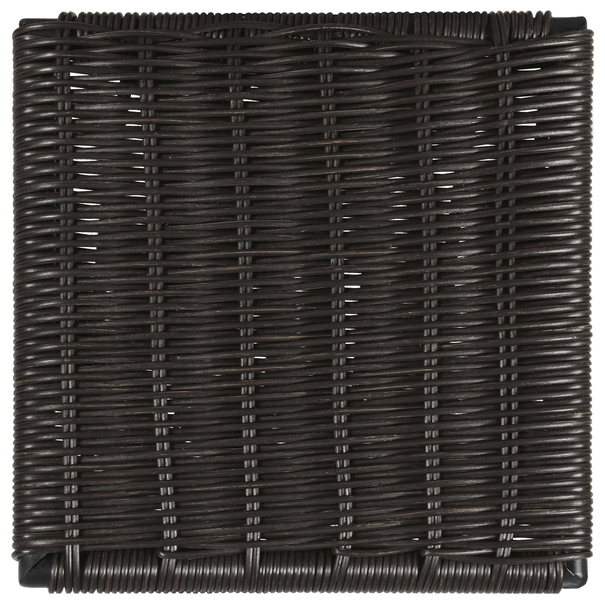 Place this transitional dining chair in a space for a hint of texture. Designed with a brown handwoven faux rattan across the seat, this charming chair offers a natural, boho-inspired vibe. Mounted on a black metal frame that offers all the support one needs, this lovely dining chair also offers vintage vibes with a flared base that lends an open, airy look. The sandy black slim frame also creates bold lines. Place this rattan-wrapped dining chair at a mid-century style dining table or allow it to grace a home office for extra guest seating.