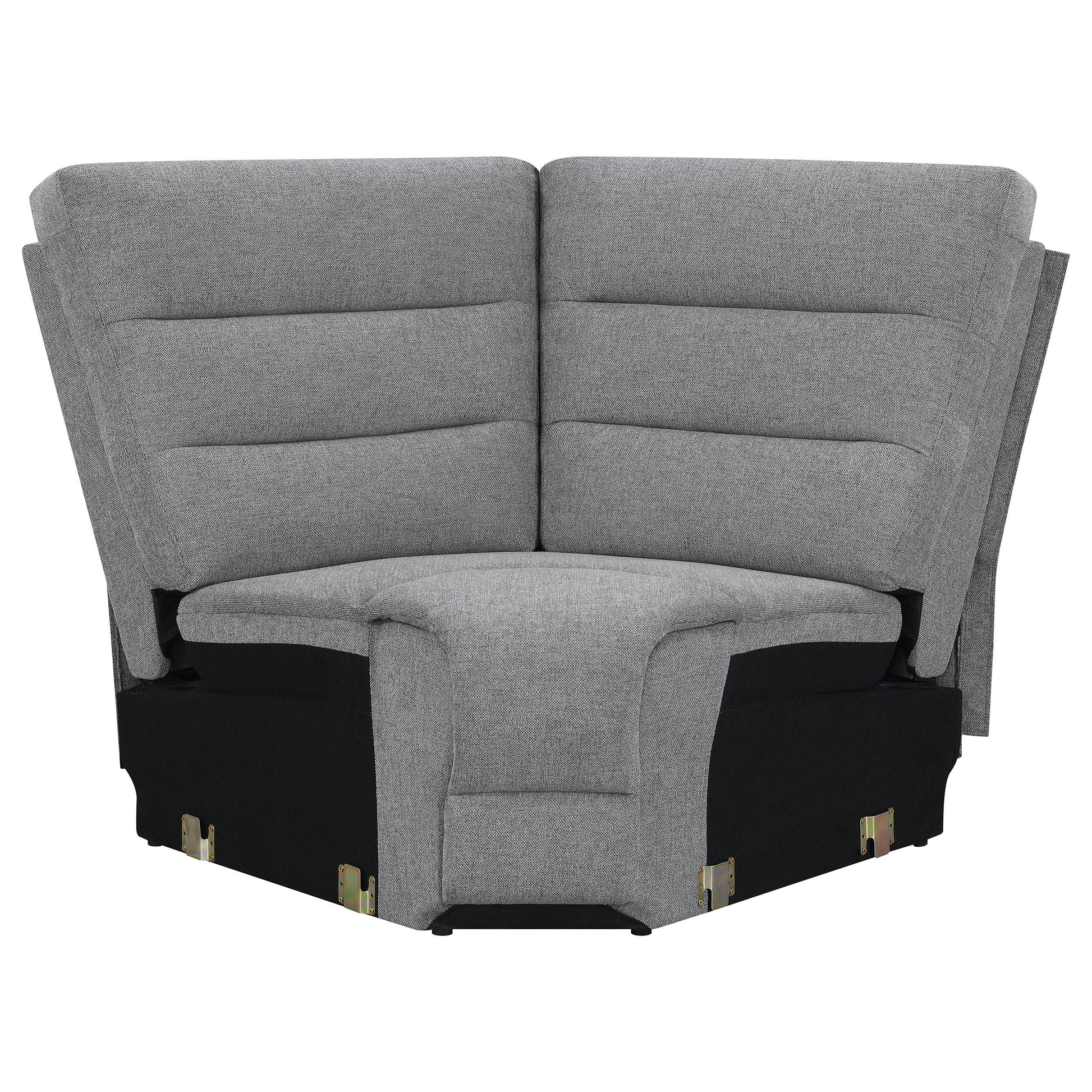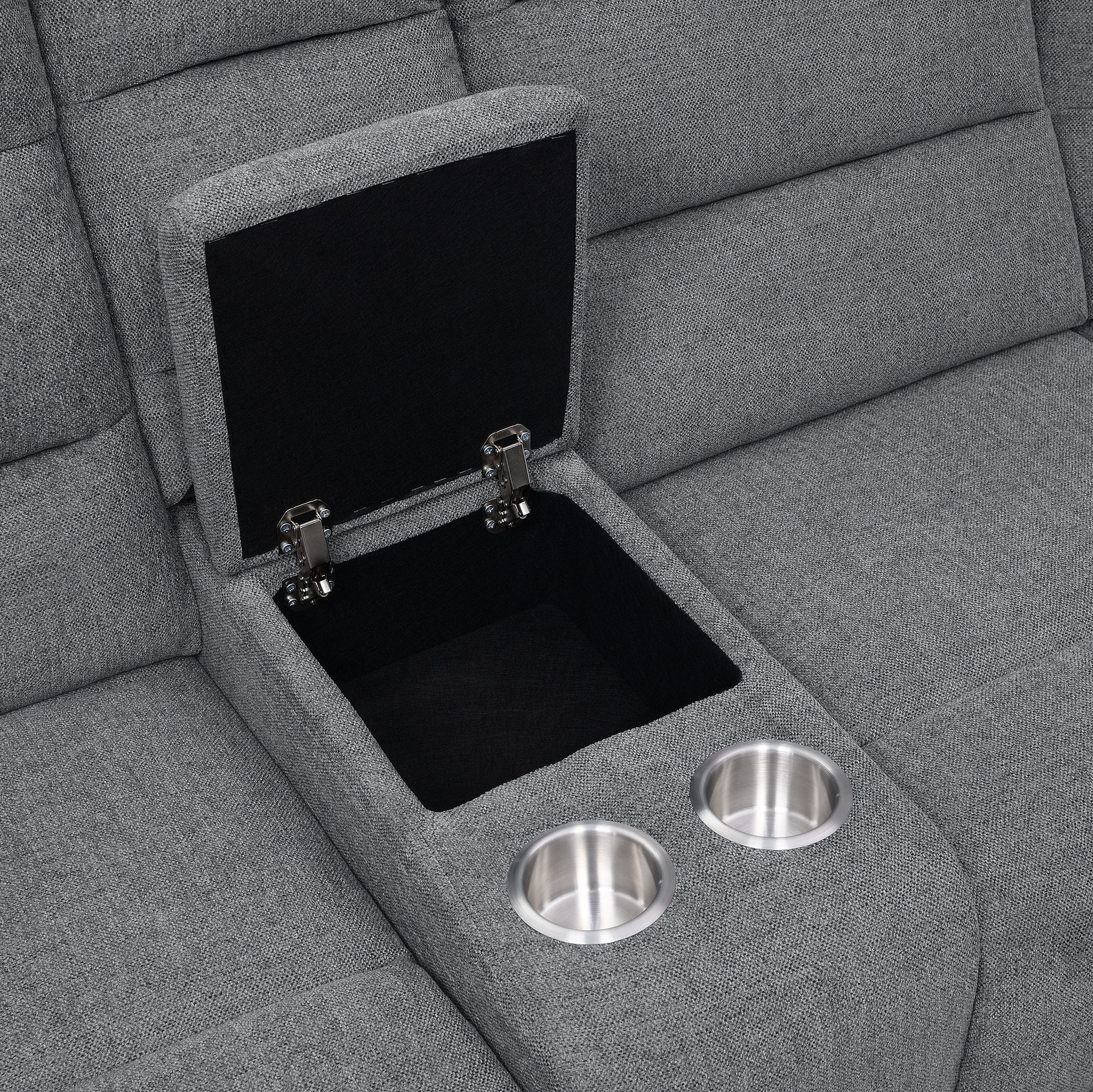 Wrapped in cool smoke color performance linen-like fabric, this modern three-piece motion sofa sectional creates a comfy venue for hosting large groups or intimate gatherings. Relax on a sofa offering manual reclining features and a wall-hugger design that saves space. Attractive horizontal channeling of soft smoke finish upholstery brings a dimensional look to this sofa, aligning with padded arms that embellish a luxurious feel. The stability of pocket coil springs in each chair space carve out extraordinary comfort. Outfitted with a lift-top console concealing storage space and removeable stainless cups in holders, it adds a go-to set of qualities perfect for today’s casual or semi-formal living spaces.