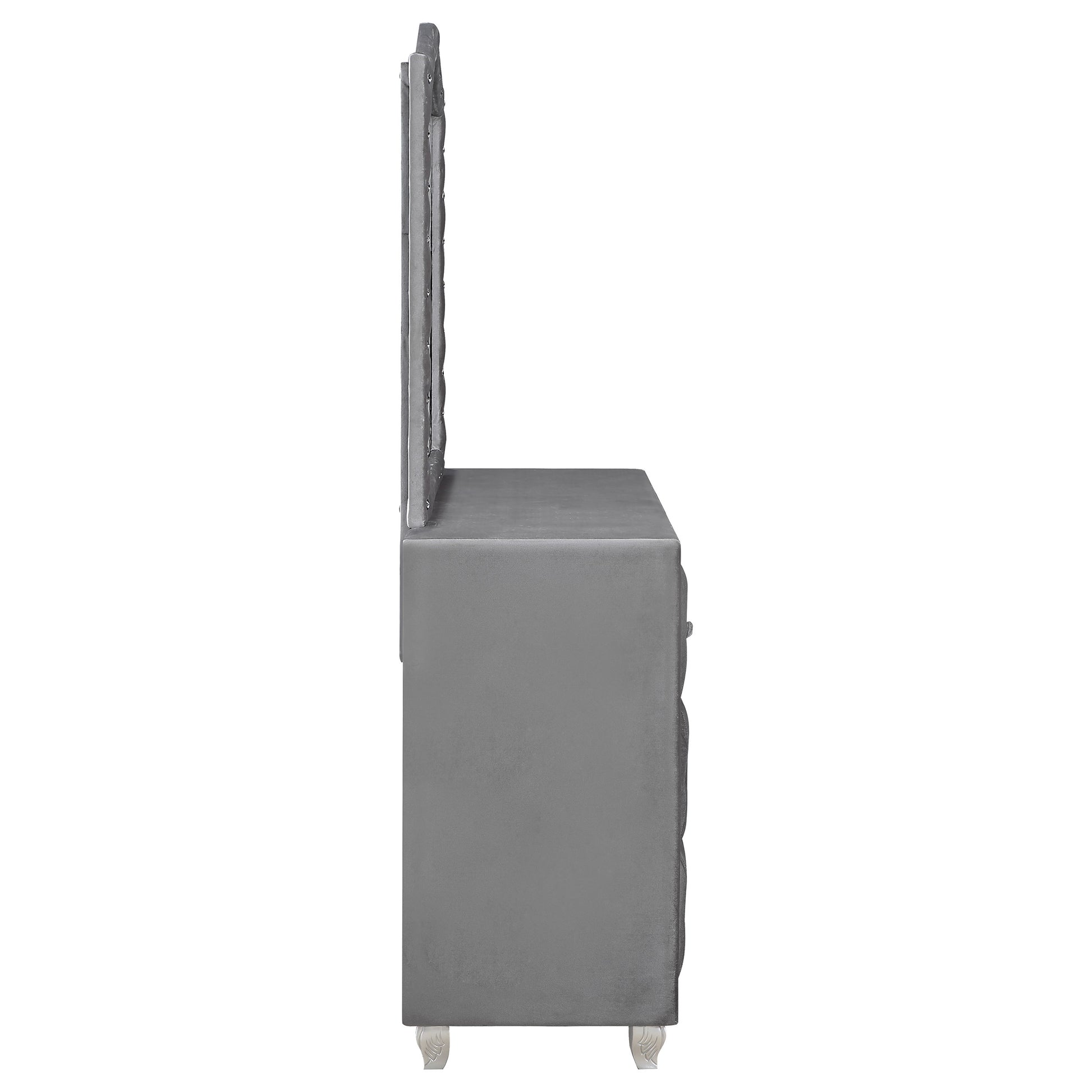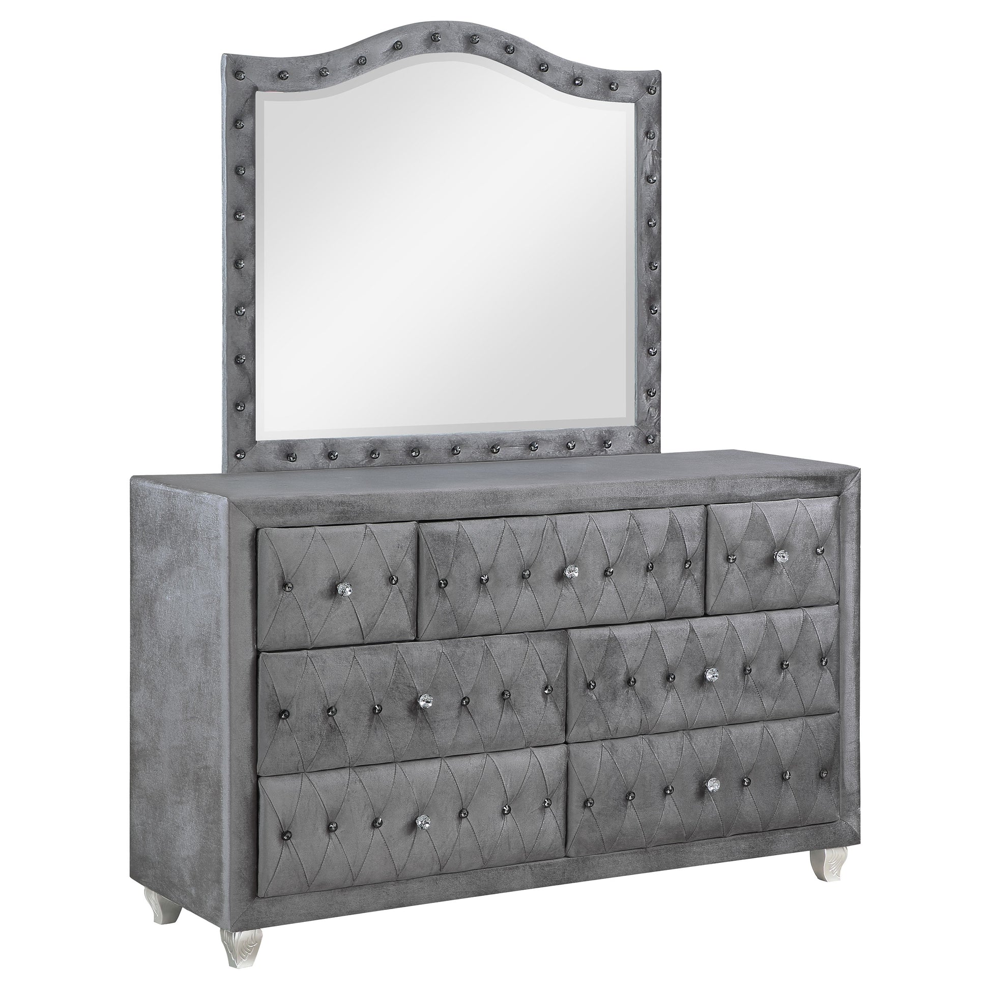 Deanna 7-drawer Upholstered Dresser with Mirror Grey