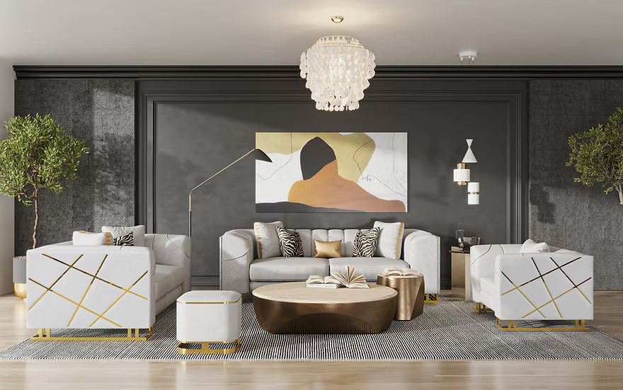 Designer Sofa-Loveseat Set Off-White