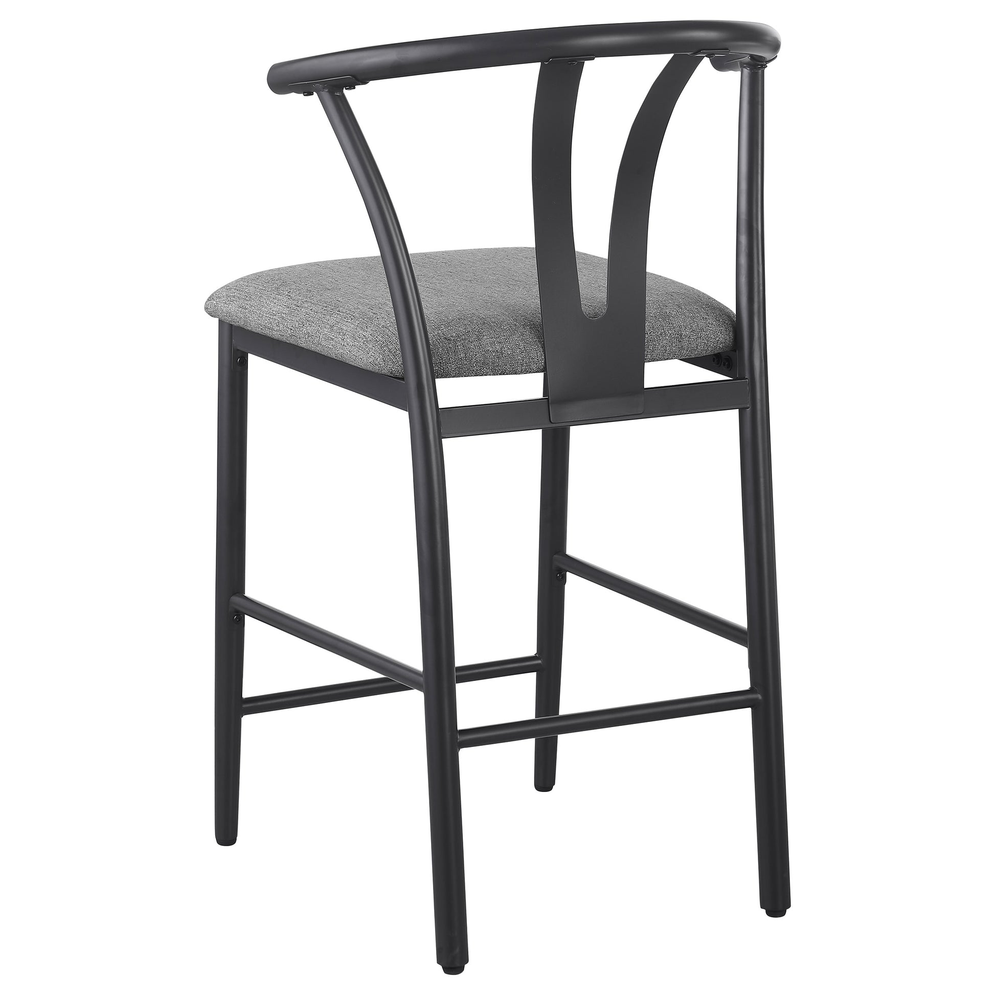 Inspired by Danish design, this counter height wishbone chair brings a touch of modern elegance to your dining or bar area. Its sleek metal frame offers exceptional sturdiness and durability, ensuring long-lasting use while maintaining a minimalist aesthetic. The foam-padded seat is upholstered in soft, textured fabric, providing comfortable seating for hours of enjoyment. Whether used at a kitchen island or counter-height table, this chair combines style, comfort, and functionality in a timeless design that enhances any space.