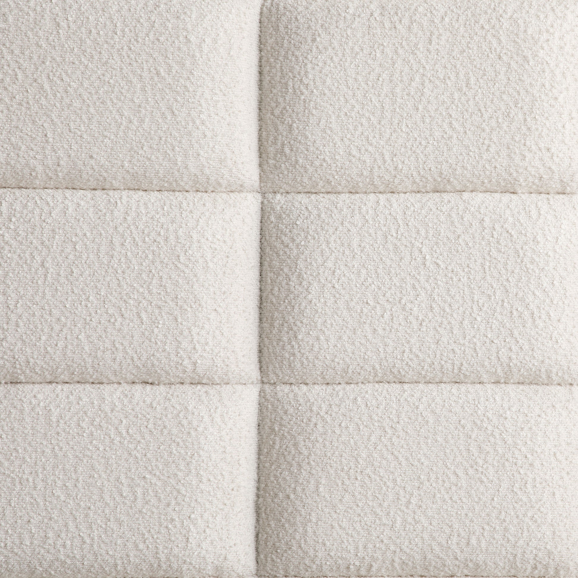 Elevate an inviting master or guest bedroom with the refined flair of this modern upholstered bed. It boasts a wooden frame in a taupe oak finish, creating a neutral palette. Cream upholstery is grid tufting, adding to the architectural appeal of this charming bed. The extra-tall headboard is paired with a low footboard, establishing an open, airy presentation in your bedroom. You'll love lounging against its foam cushioning and relaxing in comfort.
