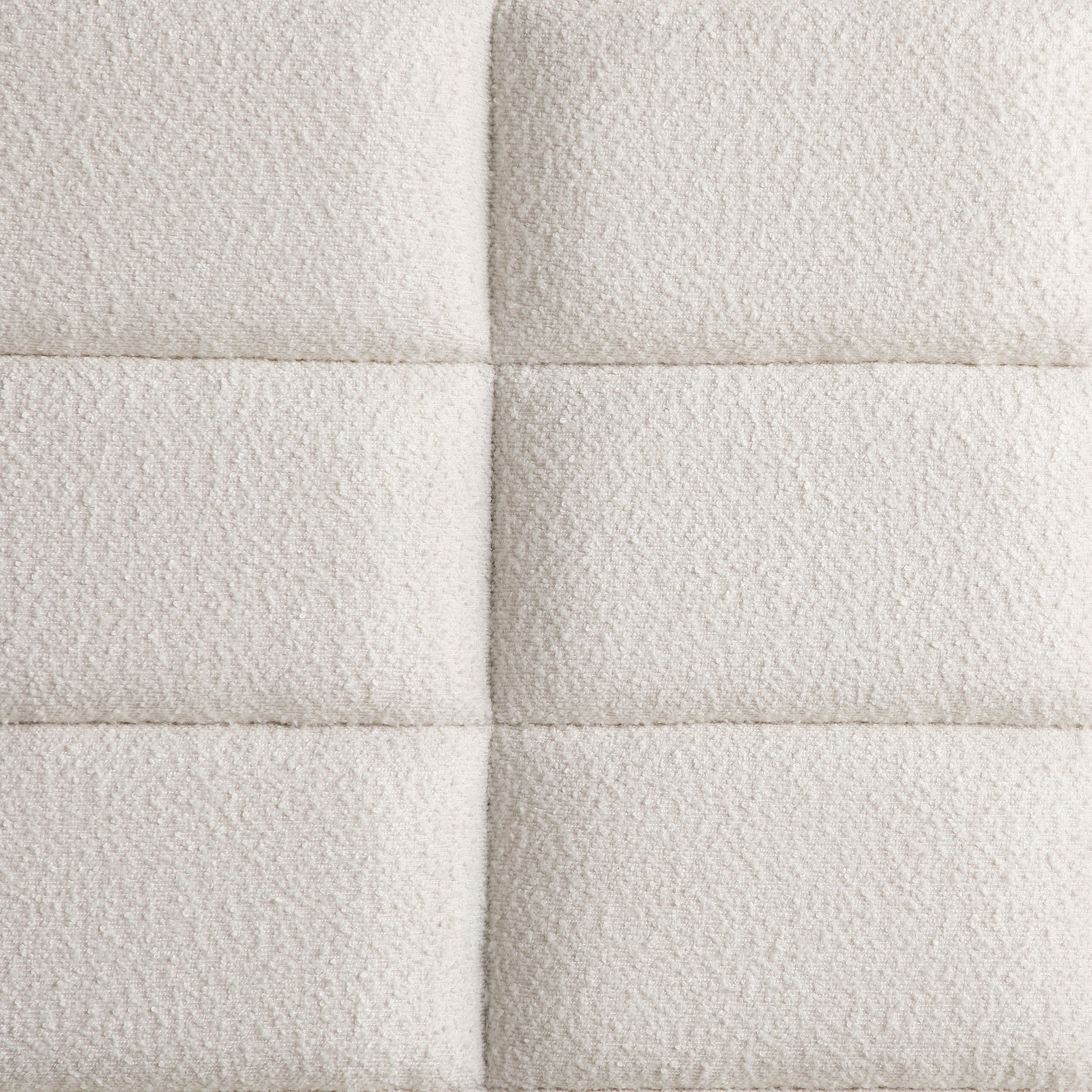 Elevate an inviting master or guest bedroom with the refined flair of this modern upholstered bed. It boasts a wooden frame in a taupe oak finish, creating a neutral palette. Cream upholstery is grid tufting, adding to the architectural appeal of this charming bed. The extra-tall headboard is paired with a low footboard, establishing an open, airy presentation in your bedroom. You'll love lounging against its foam cushioning and relaxing in comfort.