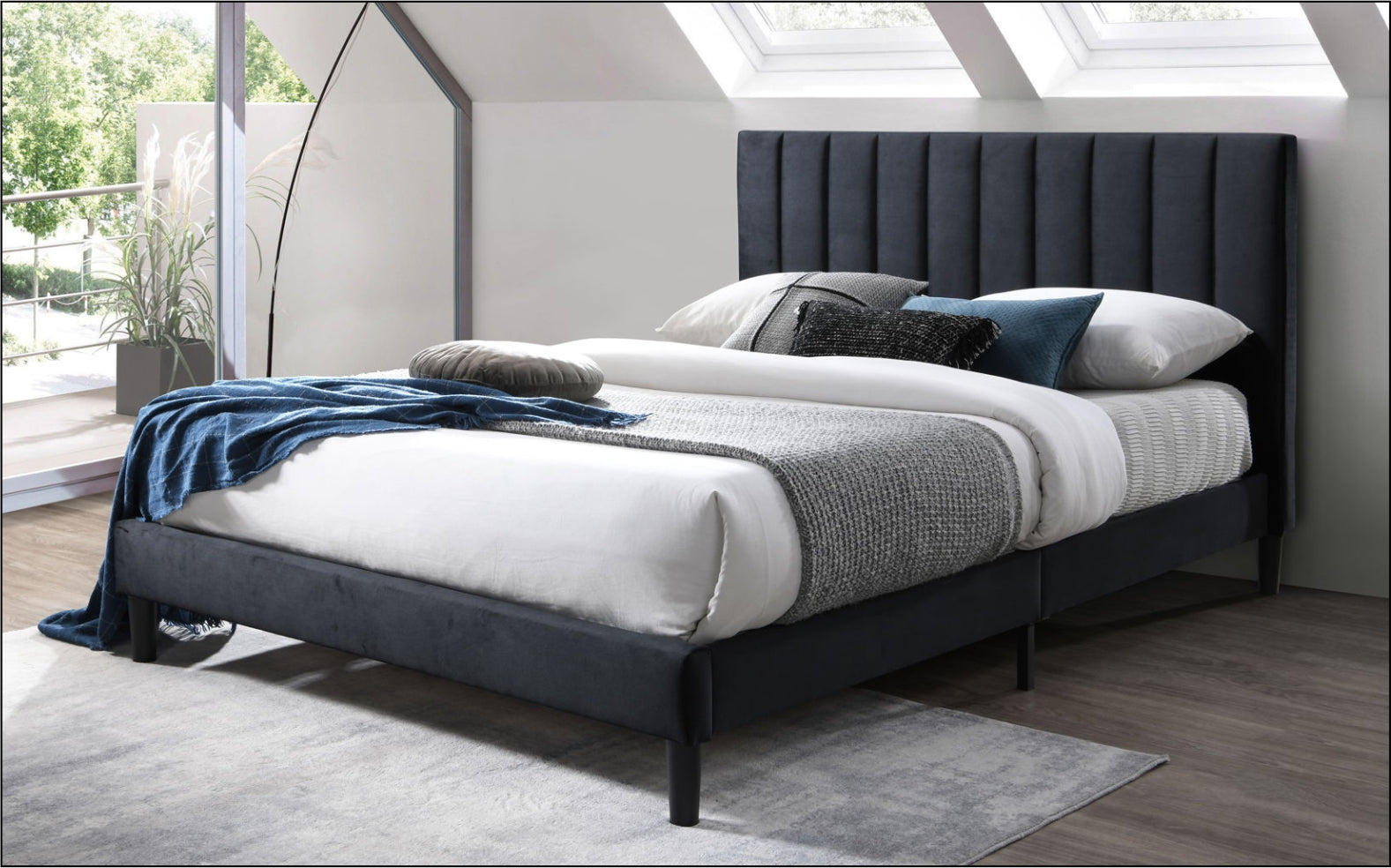 Fabric Tufted Headboard. Platform. Wood Legs.