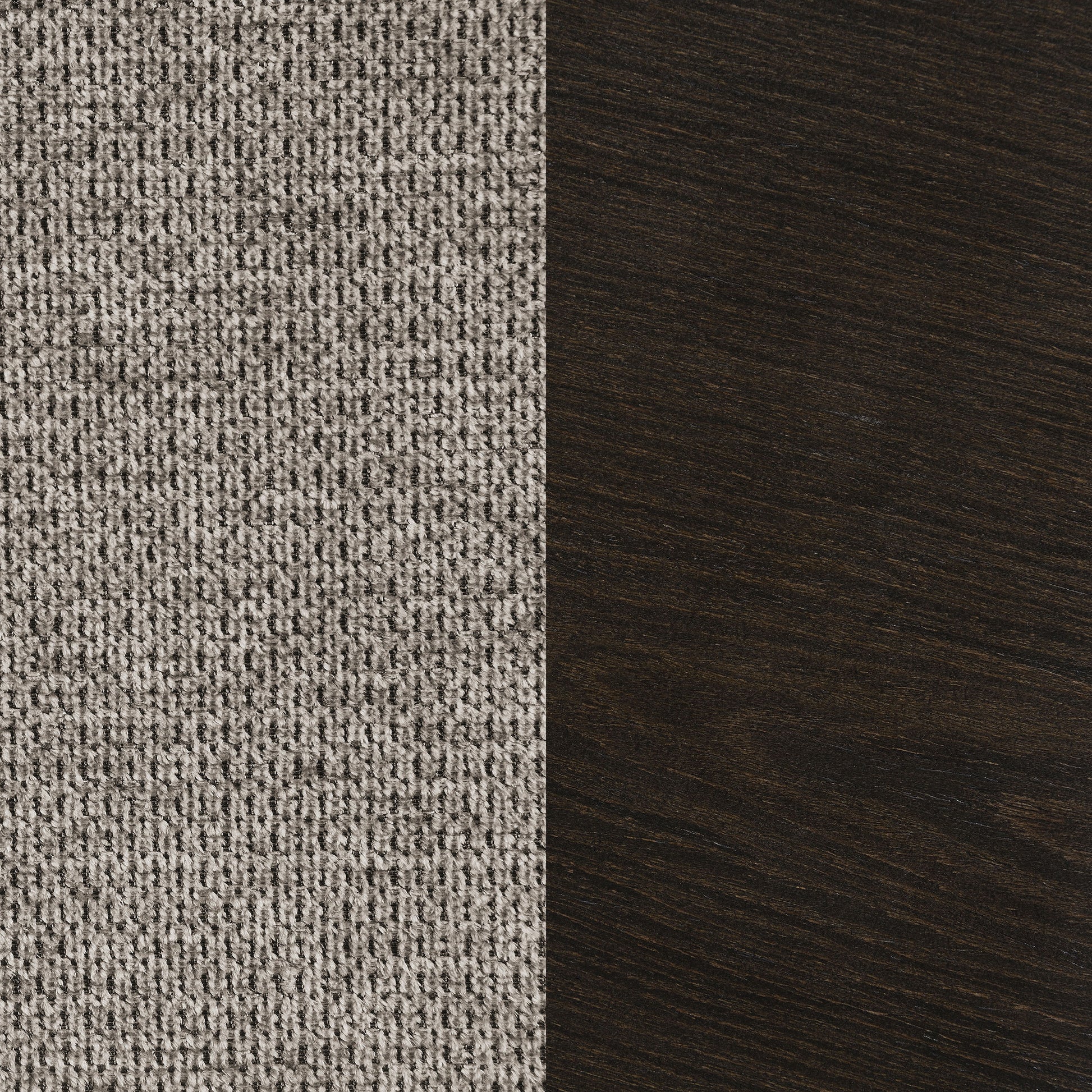 Create a relaxed and inviting ambiance at a kitchen bar or in your home lounge with a set of two modern barstools. Each boasts a durable and strong metal frame with a sandy black finish. Dark oak finish backrests complement neutral upholstery, offering foam cushioning that offers welcome comfort for family and friends. Slim structure ensures a crisp, modern silhouette for each barstool. Geometric details create a built-in footrest, perfect for leisurely enjoyment.