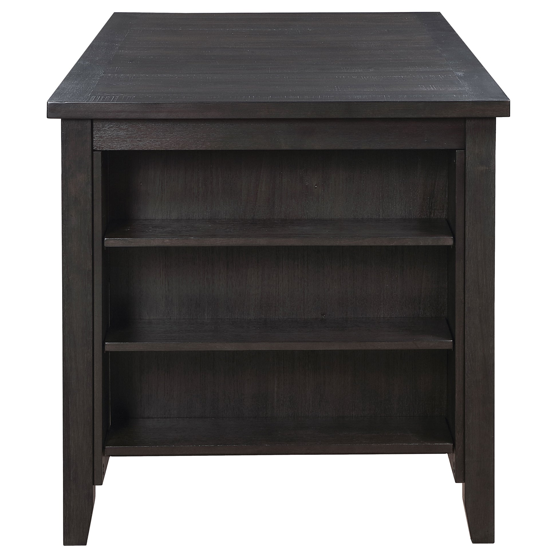 Design your casual dining space around a modern counter height dining table that's compact and multifunctional. It features a clean, classic silhouette, complete with a storage on one side. Its three fixed shelves are ideal for everything from glassware to books and decor, offering a personalized touch to your table. The table showcases a dark gray finish, providing a crisp, neutral palette and offering a stylish complement in industrial or urban settings. Choose the perfect blend of accessories for the bookcase to create a stylish presentation.