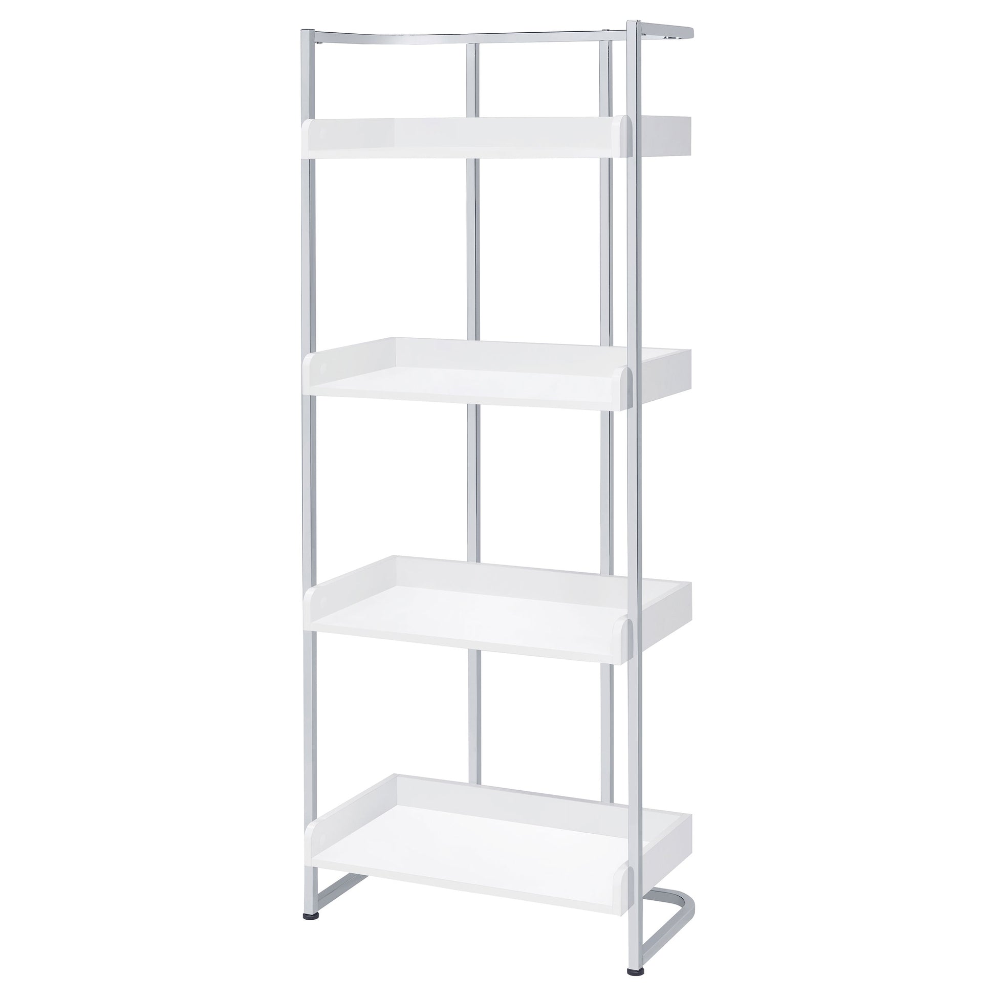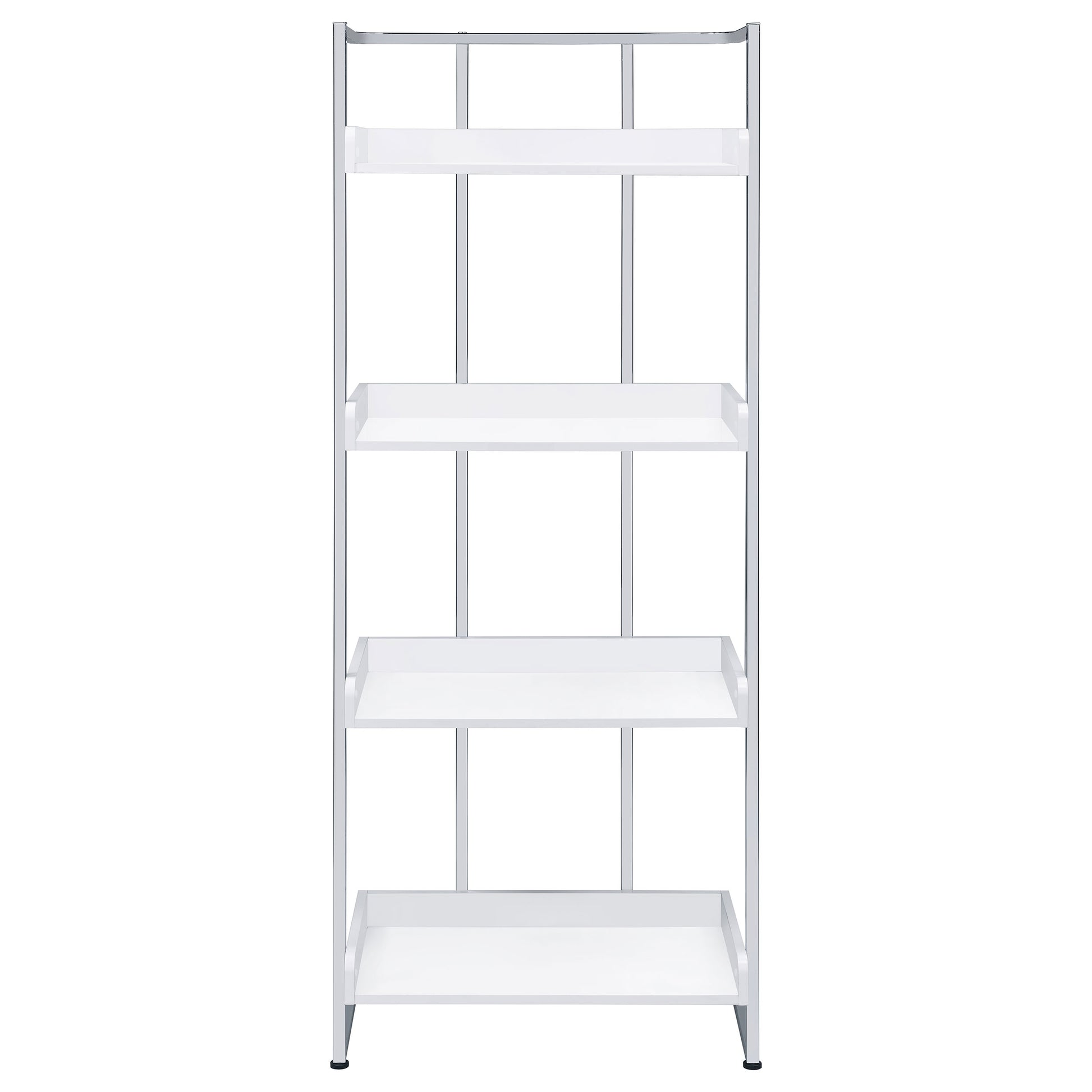 Ember 68-inch 4-shelf Bookshelf White High Gloss and Chrome