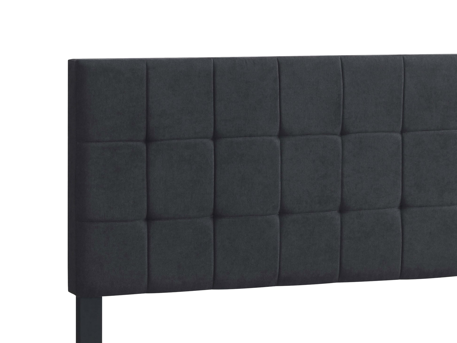 This contemporary bed offers a slim, rectangular headboard and matching footboard. The headboard and footboard also feature grid tufted padding and is upholstered in a soft fabric. Supported by dark brown tapered feet, this bed also has matching sides in the same fabric. Place this bedframe in your bedroom for a more casual, transitional look.