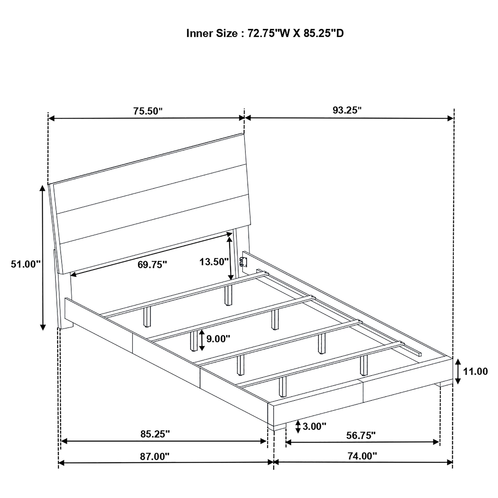 | California King Bed | 75.5 | 92.25 | 51.25 | 109.81 | |