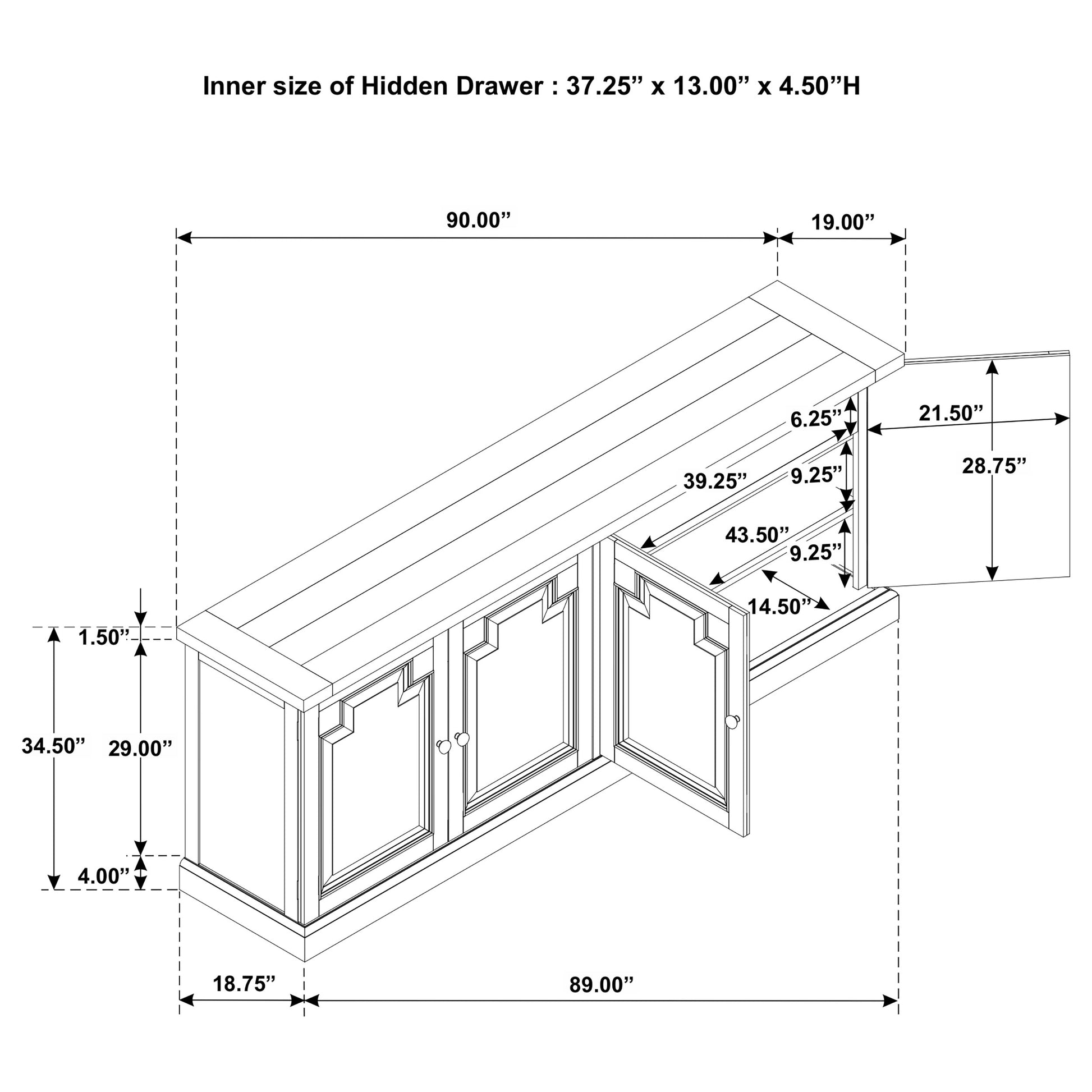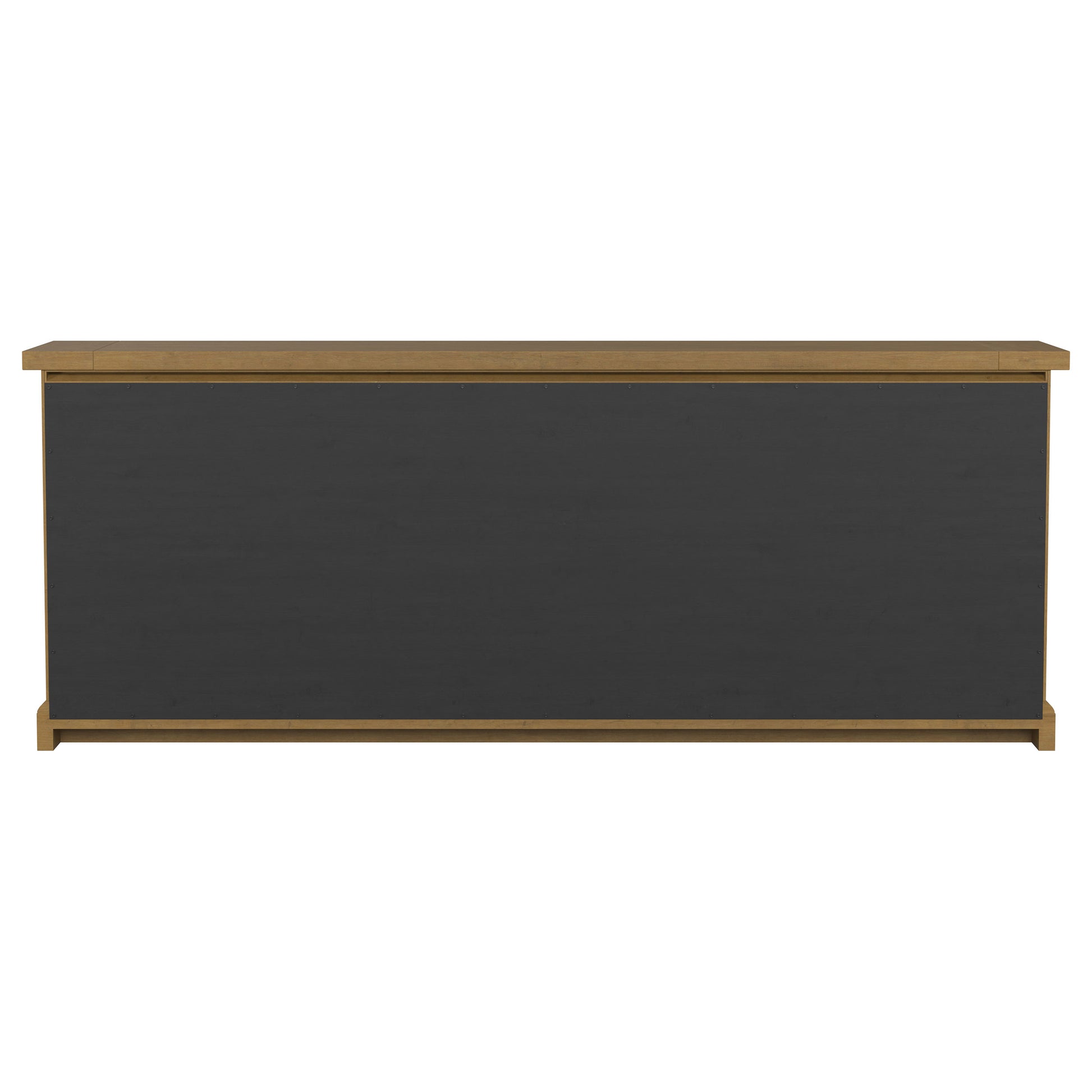 This four-door sideboard offers a refined blend of storage and style, perfect for dining and entertaining spaces. Crafted from pine, plywood, and pine veneer, it features a beautifully planked top that enhances its rustic charm. Raised panel doors lend a classic, sophisticated appeal, while the spacious interior includes two nested drawers with self-closing metal slides for effortless organization. This versatile piece functions beautifully as a server, providing ample space for dishware and linens. With its elegant craftsmanship, it also serves as a buffet, adding both convenience and timeless appeal to any home.