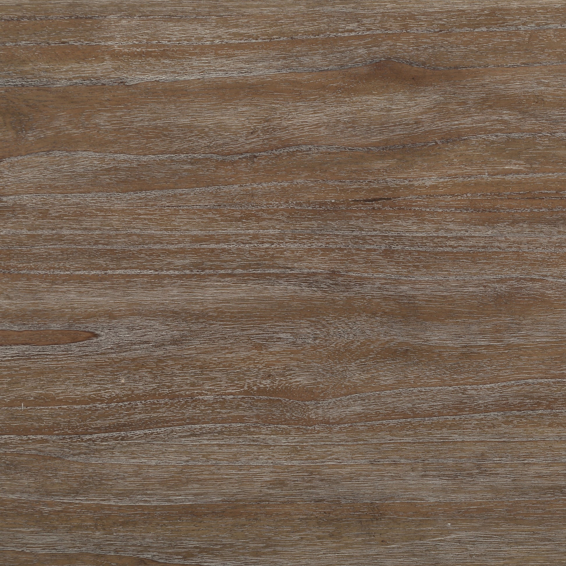 Complete your modern farmhouse dining room with this seven-piece dining set. Complete with one dining table and six side chairs, it offers a matching vintage white finish that lends a country charm. The spacious, rectangular dining table also features a chestnut colored, sandblasted wood tabletop with a dry brushed weathered finish. Each of the six chairs have a sturdy solid wood frame and flared backrests with open double-cross designs. Rest comfortably on their cushioned seats, wrapped in a high performance fabric in a grey hue that complements numerous color palettes.