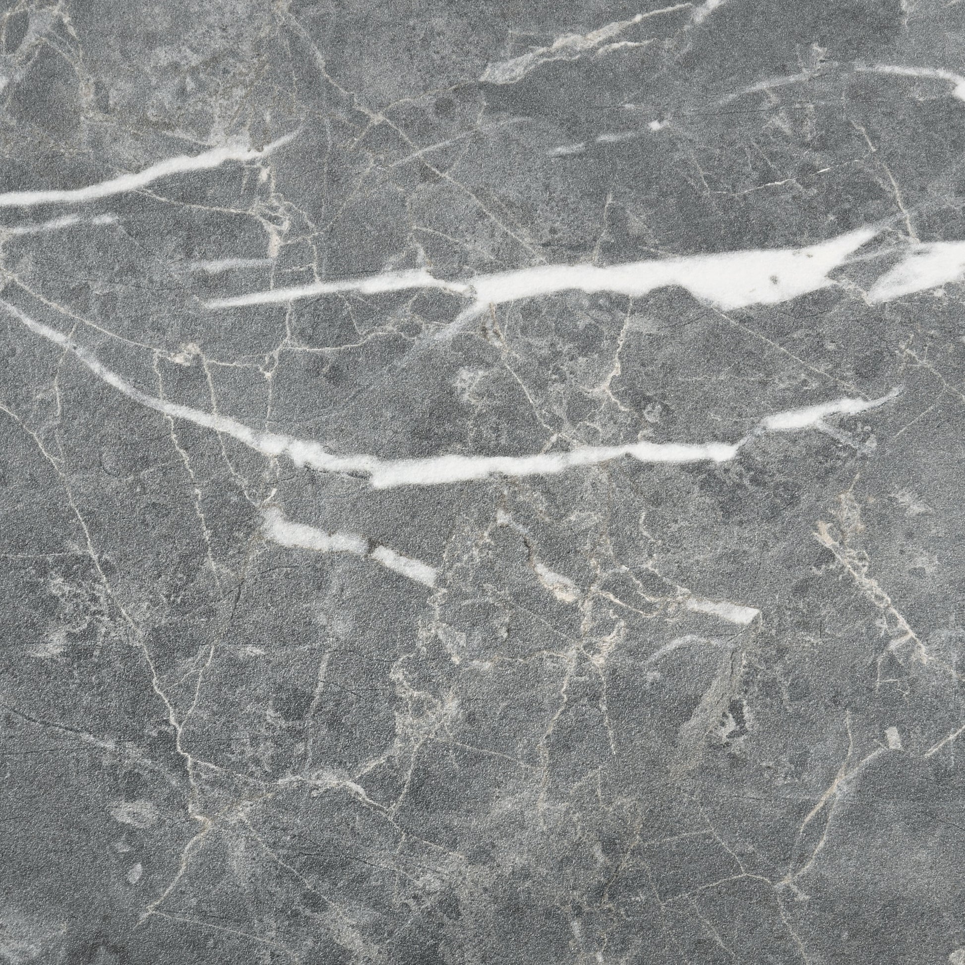 This round dining table blends sculptural minimalism with cutting-edge durability for a bold yet refined statement. Its Smart Top surface features a revolutionary faux marble laminate that is environmentally friendly, heat resistant, break-proof, stain and scratch resistant, and effortless to maintain. The veined grey top rests on an inverted conical pedestal in a rich dark oak finish, crafted from four interlocking panels with metal leaf buckles for seamless assembly. Ideal for seating four to six, it elevates any modern dining room.