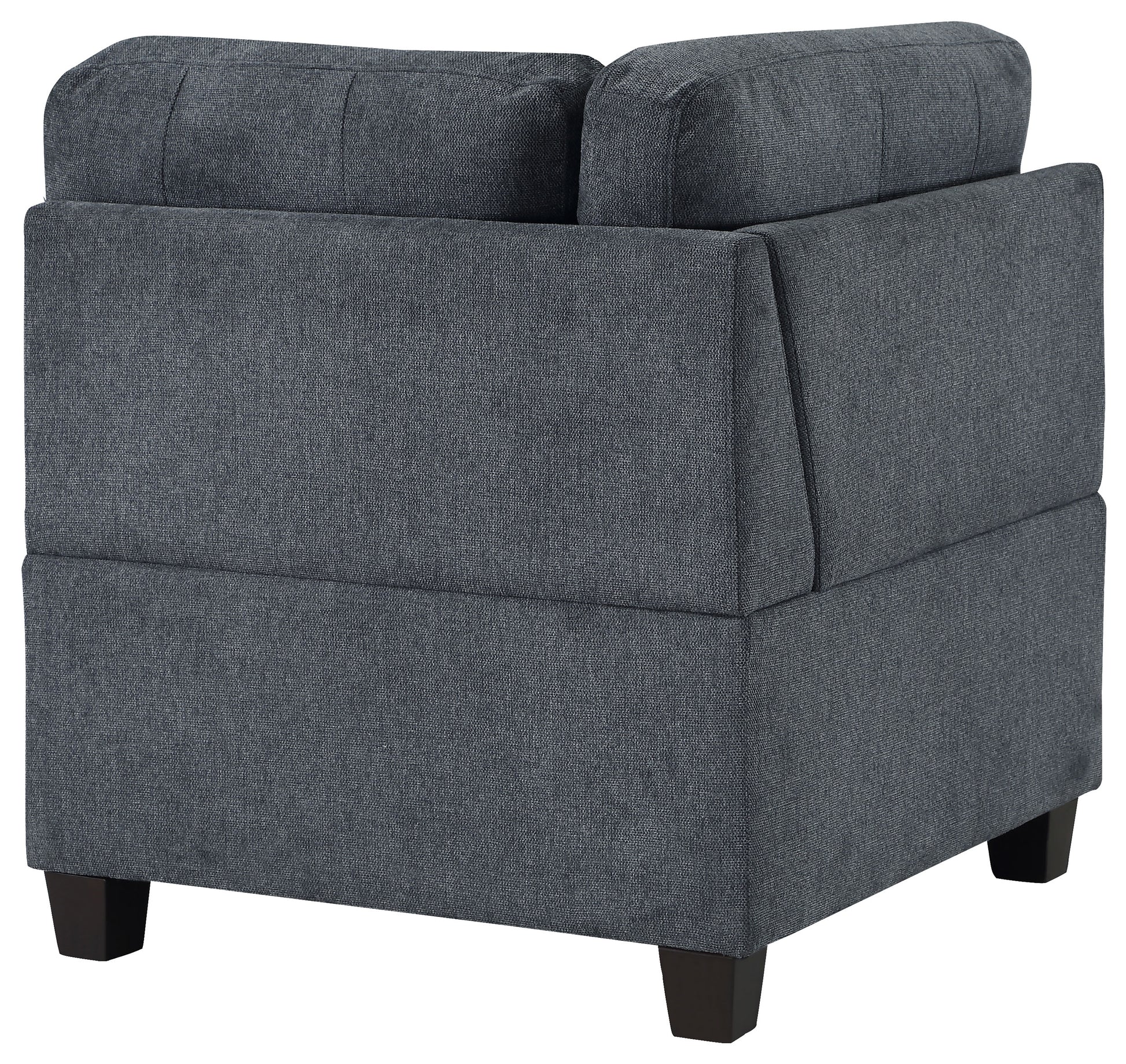 Complete your modular sectional with this corner chair, designed to maximize seating and style in your living space. Upholstered in a beautiful fabric, this chair seamlessly blends into transitional decor while offering exceptional comfort. The corner design is perfect for connecting other sectional pieces, creating a cohesive L-shaped configuration. Foam-padded cushions provide plush seating, supported by a durable wood frame that promises long-lasting use. The chair’s subtle tufting and chunky wood feet add a touch of elegance, making it a stylish addition to any room.