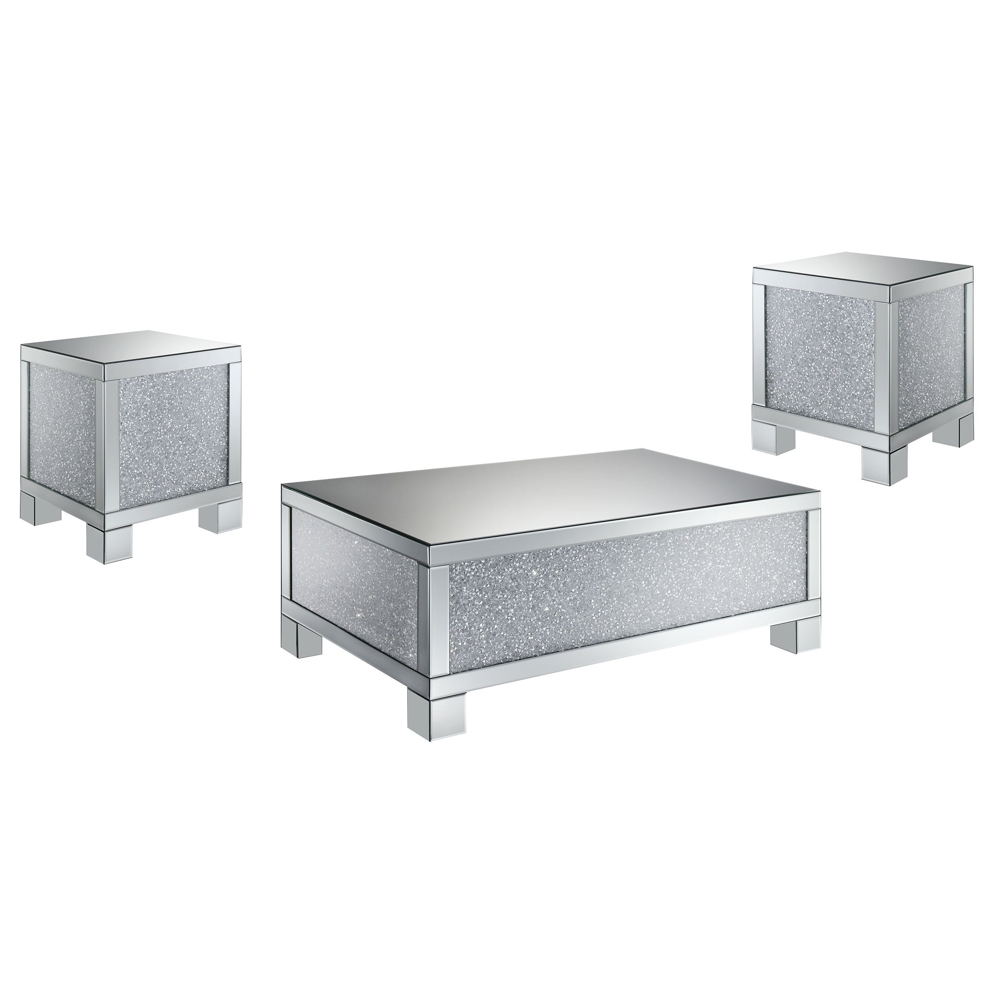 Gillian 3-piece Mirrored Coffee and End Table Set Silver