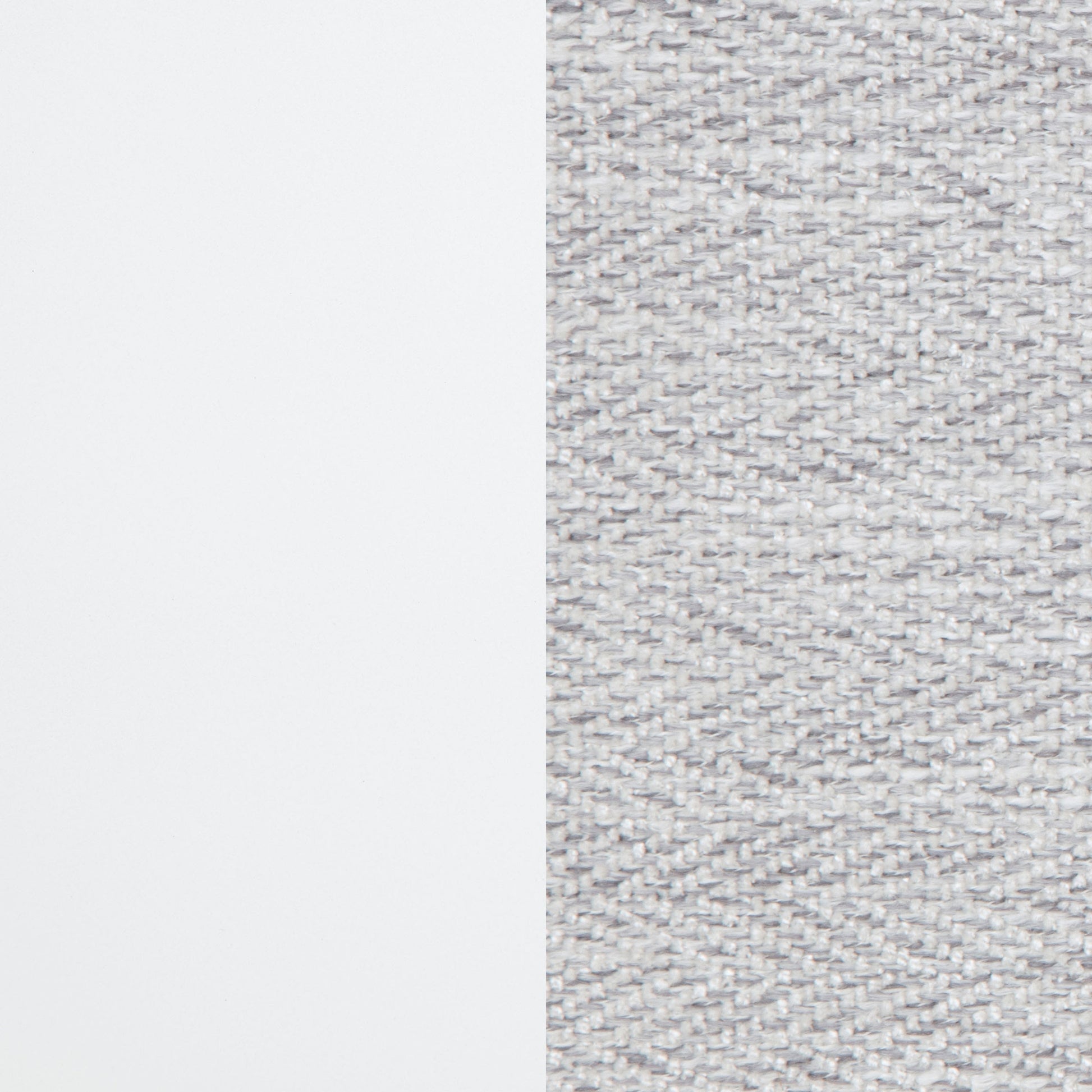 This panel bed pairs crisp framing with soft textures for a look that feels both refined and restful. The panel-style headboard and footboard are upholstered in light grey fabric with subtle herringbone texture, bordered by a clean white frame and finished with brushed nickel feet. Crafted from solid rubberwood, engineered wood, and foam padding, it offers visual contrast and supportive comfort. Foundation required.
