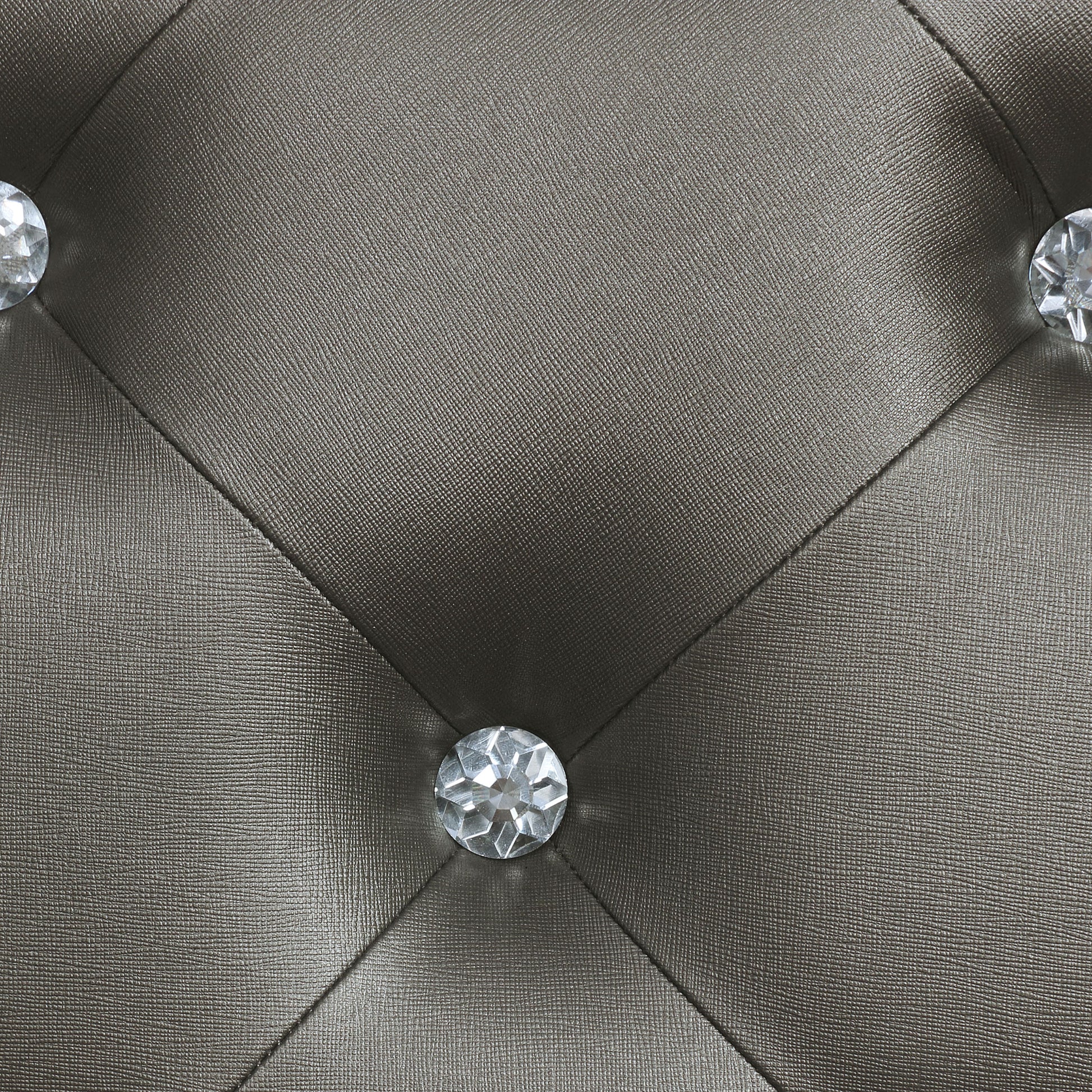 This glamorous contemporary bed features a variety of features that make it a must-have in any modern home. This exclusive Coaster design comes in a shimmering silver metallic finish that enlivens any space. The imposing headboard is upholstered with metallic leatherette that's fully tufted with crystal buttons. The headboard also includes white LED touch lighting so you can enjoy a vibrant ambiance. Solid block legs on the headboard and exquisite bun feet on the fret work detailed footboard come together to finalize the style of this fabulous bed.
