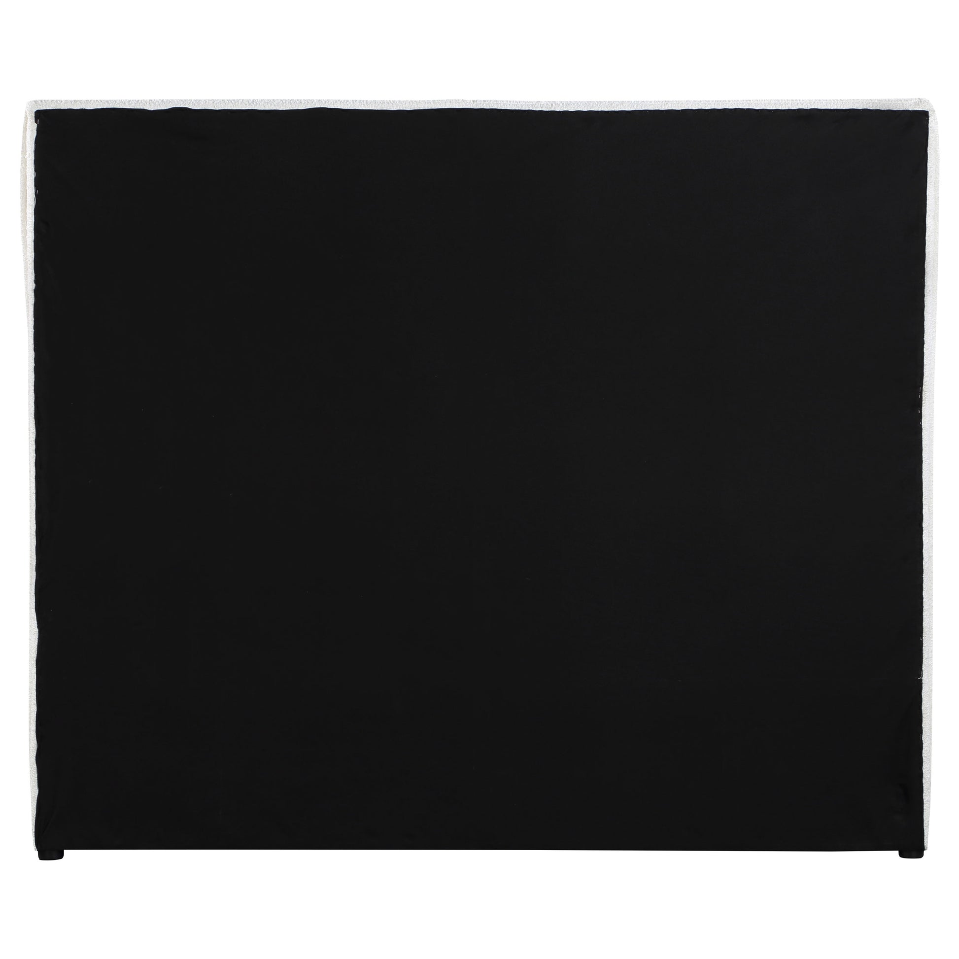Get cozy with this plush upholstered bed, featuring trendy and soft boucle fabric that fully covers the frame. Two extra-large pillows attached with tie-offs add comfort and aesthetic appeal. Its sophisticated texture looks amazing from across the room, while the perfect headboard allows for comfortable sitting and enjoyment of various activities. The frame is expertly crafted for durability and reliability.