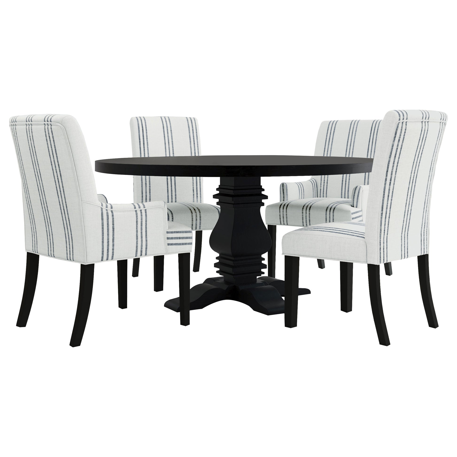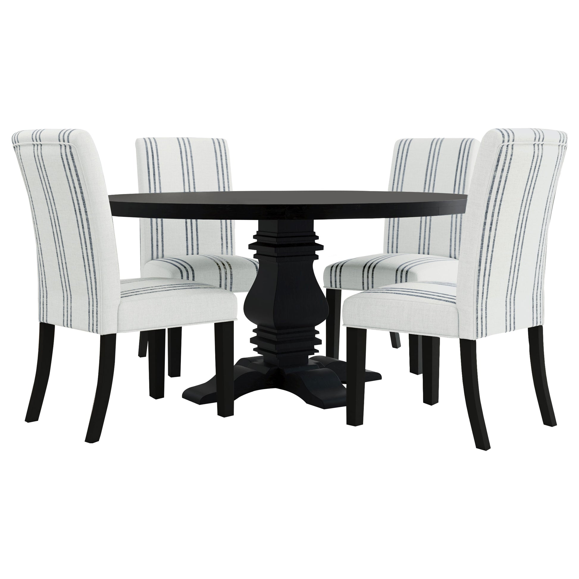 This dining chair blends casual elegance with functional comfort, making it a versatile addition to dining spaces. Upholstered in a linen-like beige fabric with subtle blue stripes, it adds a relaxed yet refined aesthetic. The chair features a padded seat and backrest, ensuring comfort during meals or gatherings. Supported by a sturdy rubberwood frame with a sleek black finish, the design balances durability and style. Perfect for modern, farmhouse, or transitional decor styles.