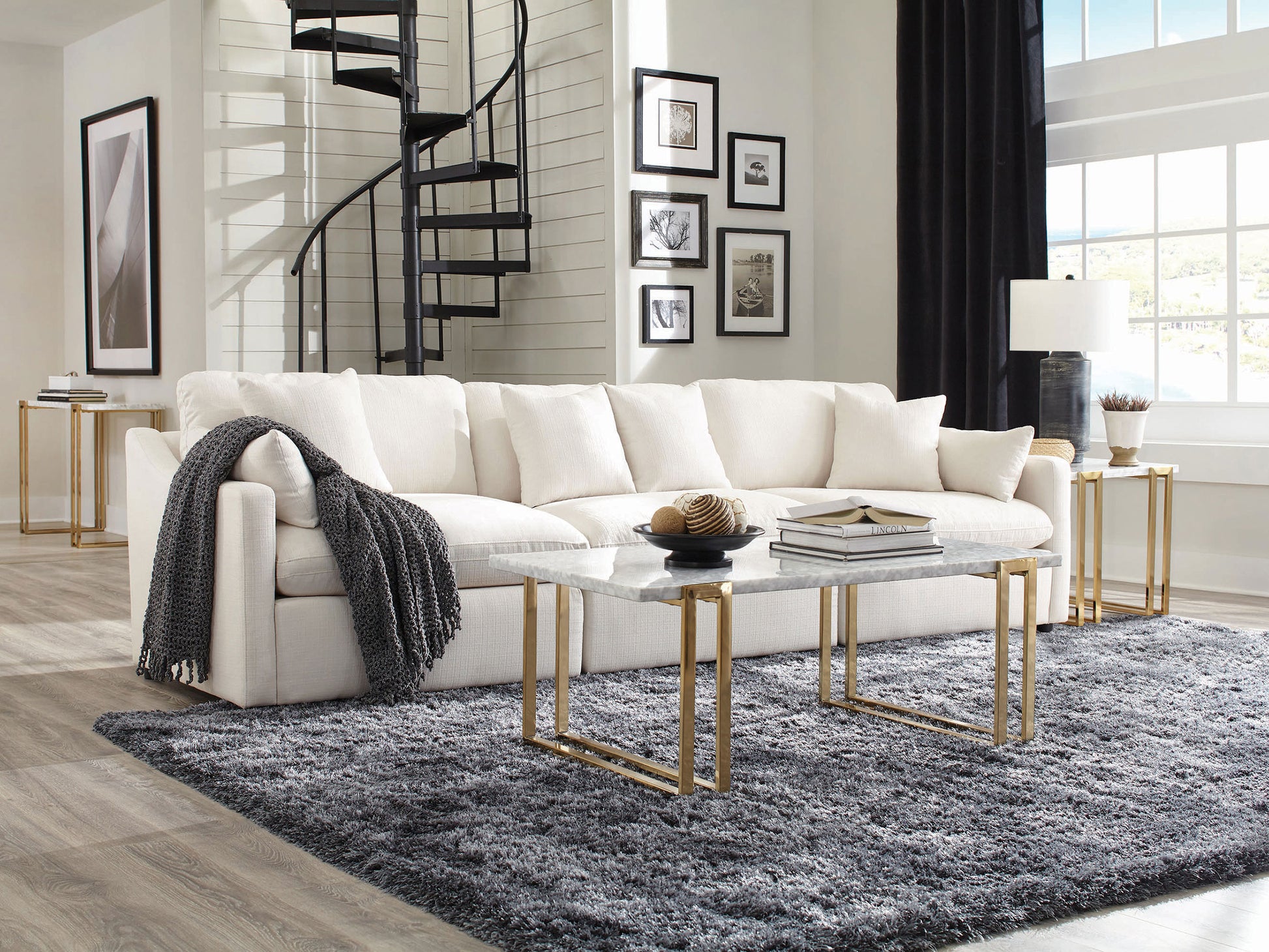 You'll sink gratefully into the cushioned comfort of this left arm chair as part of a sectional for the den or living room. Upholstered in linen-like, the chair is fashioned with a plush seat and back for long-lasting comfort. It's also crafted with sloped track arms accented with handsome topstitching. The treated fabric easily repels water and moisture so you can wipe up spills before they soak in. It's the perfect end piece to your modular sectional centerpiece.
