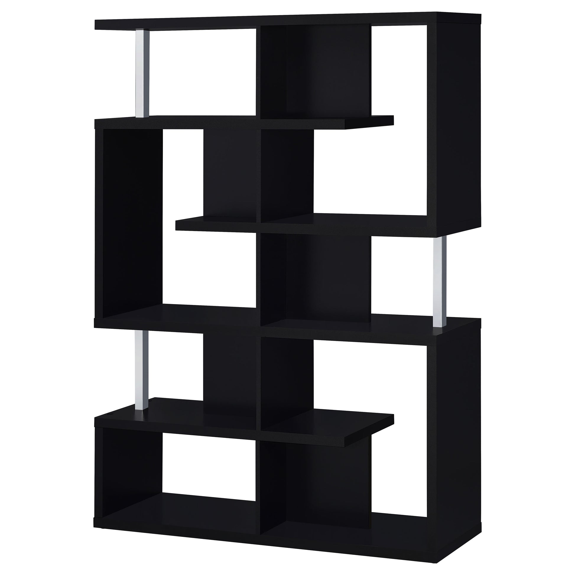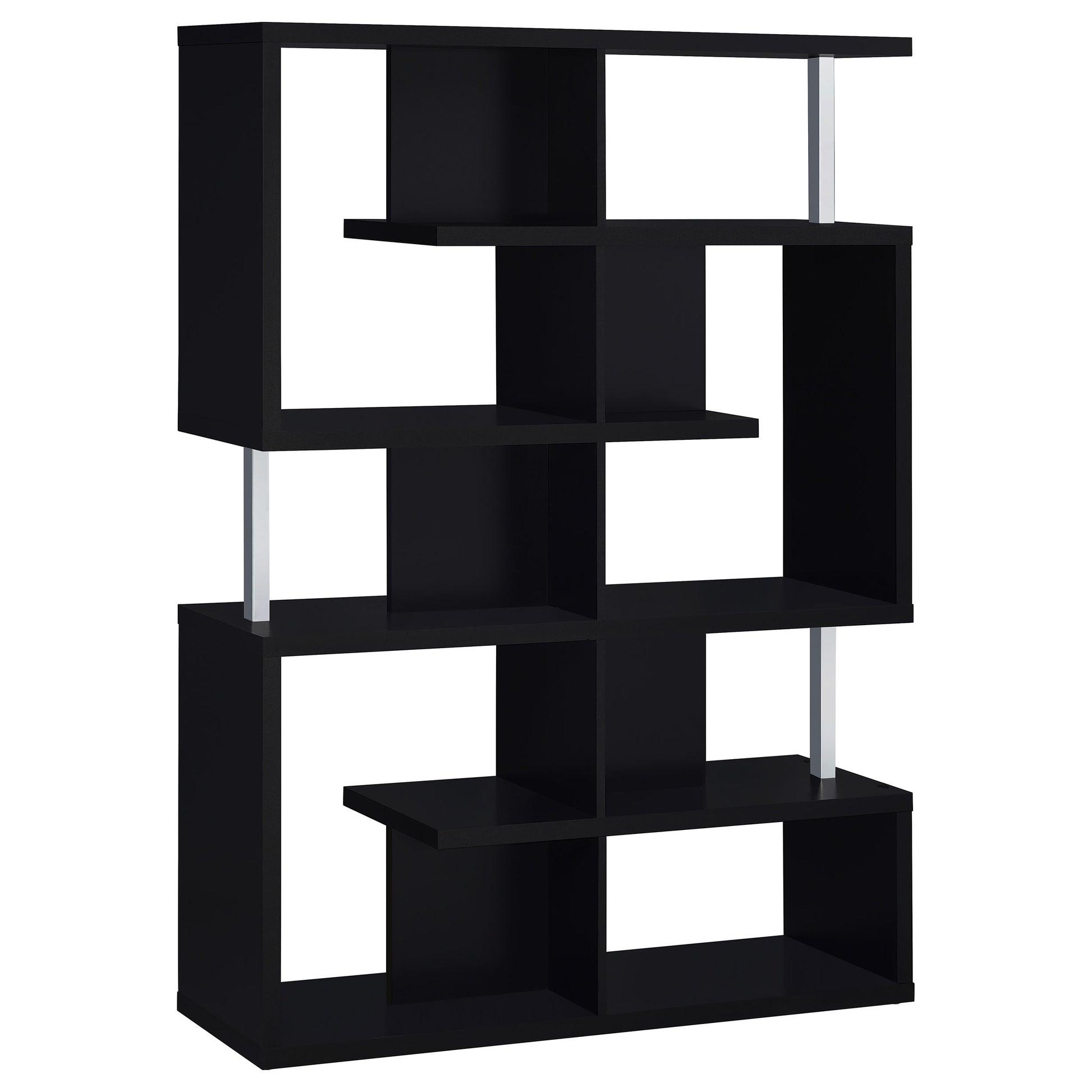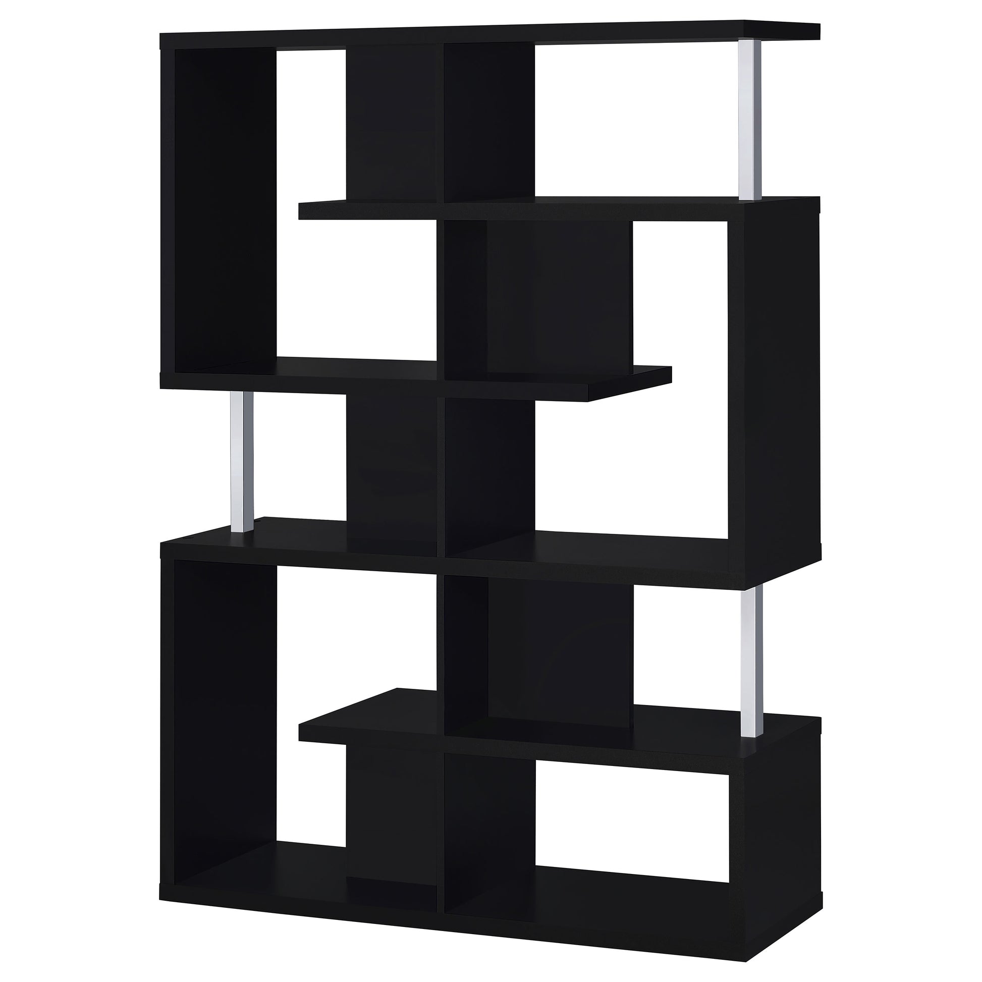 Accentuate an office or living room with style and pizzazz. This double bookcase boasts five tiers of multi-level shelves, providing plenty of space for storage. Choose a black finish for a more subdued look, or white for a kick of contemporary cool. Chrome details liven up its artful design. With its modern silhouette, this bold bookcase is sure to be a conversation piece.
